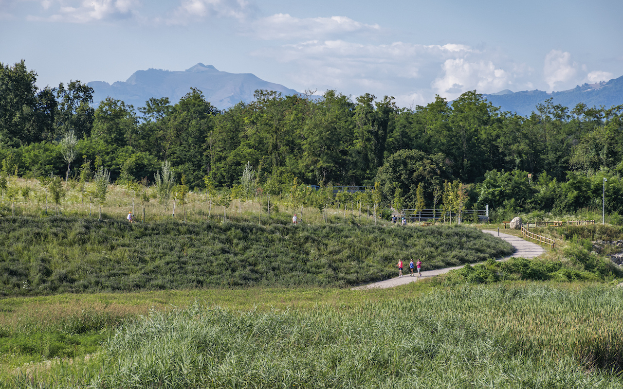 The regeneration work carried out on an area of 20 hectares, with the main purpose of controlling and limiting the phenomena of river overflowing, becomes an opportunity to promote a sustainable development and a sustainable lifestyle, highlighting the need of an integrated urban and suburban planning to reduce the environmental impact of human being. Water is not a problem to be solved, but becomes the protagonist of the project, through the provision of three different water basins that characterize the entire area of intervention: two of these designed to collect temporarily the water of Lura in case of flood, the third is a permanent pond fed with groundwater. The latter basin with hygrophilous vegetation allows to integrate within the project the objective of enhancing the biodiversity and the ecological value, creating an ideal habitat for the settlement of various animal species. New animal species were, indeed, appeared near the river after the intervention. In addition to the construction of the three basins, reforestation measures were implemented with 35,000 sqm of woodlands and 12,000 new trees. This creates an area of high environmental quality, capable of excellent performance in terms of pollution and carbon sequestrations, with positive effects on the entire local macro-climate. In line with a sustainable approach to the project, and in order to limit the amount of sealed surfaces, the project was realized with no soil and land consumption, thanks to the reuse of excavated earth to readjust the topography, work on the riverbanks and reshape the entire project area.