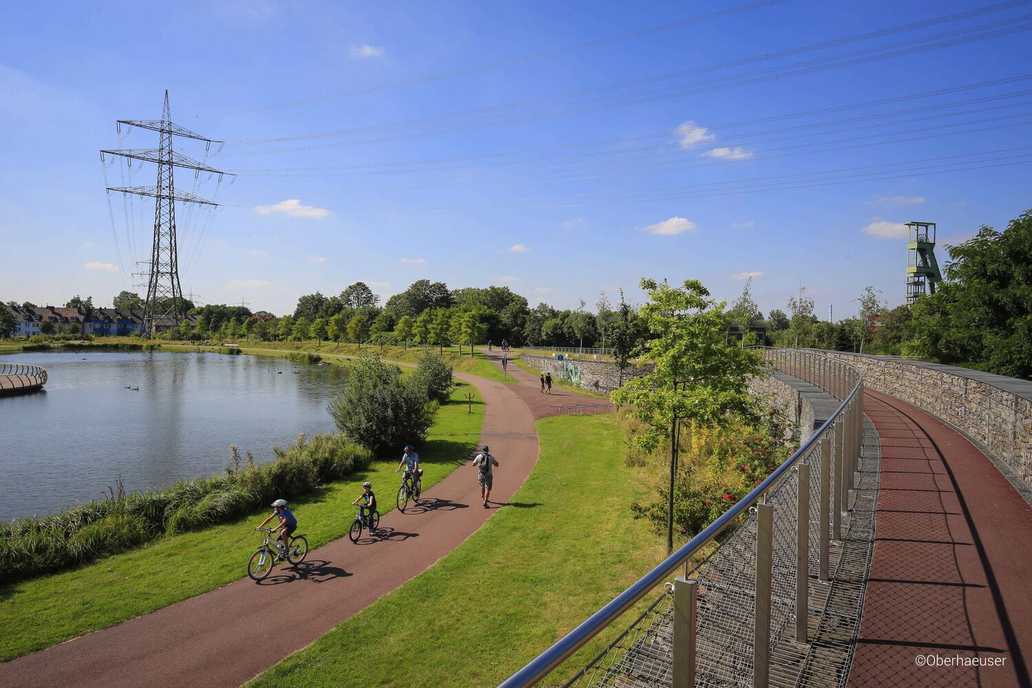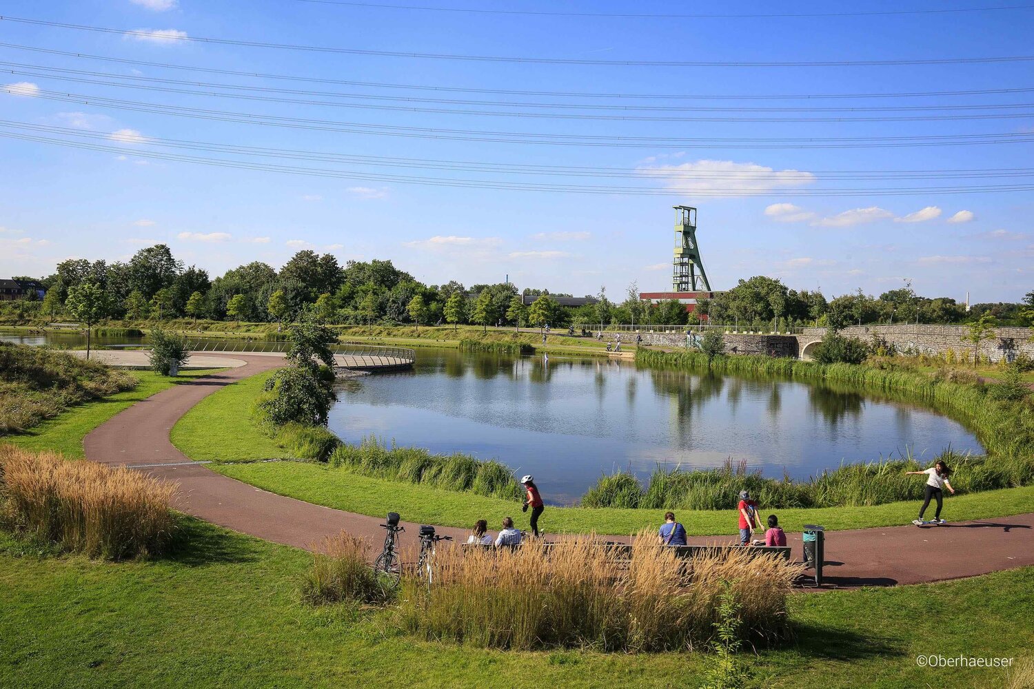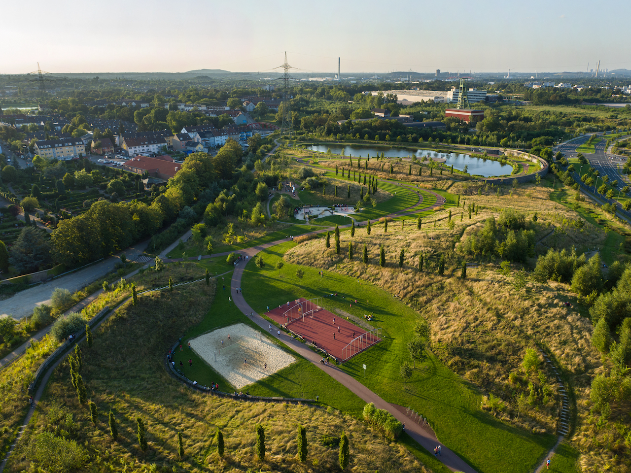 The guiding concept for this introduction of nature in the built environment is the one of green infrastructure. It implements a systematic fusion of actions such as nature and climate protection, the creation of urban green, the creation of cultural landscape, the construction of emission neutral mobility systems and the development of open water bodies. The landscape vision "Freiraum schafft Stadtraum" (Free space creates urban space), of which the Krupp Park represents an important component, is a broad strategy to build up step-by-step new urban landscape structures for different urban uses. The speciality of the Park is its territorial contextualization and derivation, from an industrial vast to a climate friendly neighbourhood space. The hydric connection from the lake to the Emscher river is not only strenghtening the biodiversity-network but introduces potential for development of recreational upgrades. The new developed landscape sustainably gentrifies the touching neighbourhoods, positively influences the air and climate and offers new living spaces for animals and plants.