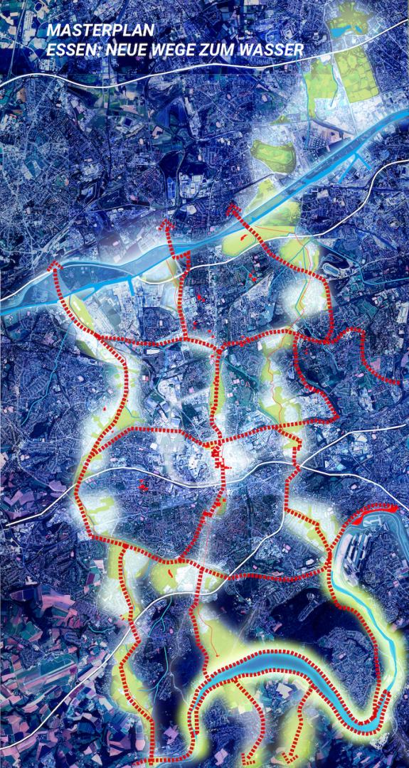 The Krupp Park is part of a holistic development approach that started in already in the 90s: Based on the United Nations Conference on Environment and Development, Rio de Janeiro, 1992, the city of Essen elaborated an Urban Ecologic Article for the North of Essen in 2000. It established nature protection goals and the base of a landscape plan to protect and develop the nature of the city. From this appeared that the West of the city lacks of green public space, of which the strategy "Freiraum schafft Stadtraum", implemented in the Masterplan "Essen: Neue Wege zum Wasser" arose in 2005-2006. The Masterplan foresees green-blue rays that cross the city from north to south, fortifying the ecosystem-connections between the rivers Emscher and Ruhr which flow in the North and the South of the city. The competition for the Krupp Park was held in 2006, representing one section within one of the green-blue corridors of the Masterplan. The Masterplan, its constant evolution and the projects resulting from it contributed to the awarding as European Green Capital 2017 and continues to guide the urban development until IGA Metropolregion Ruhr 2027.