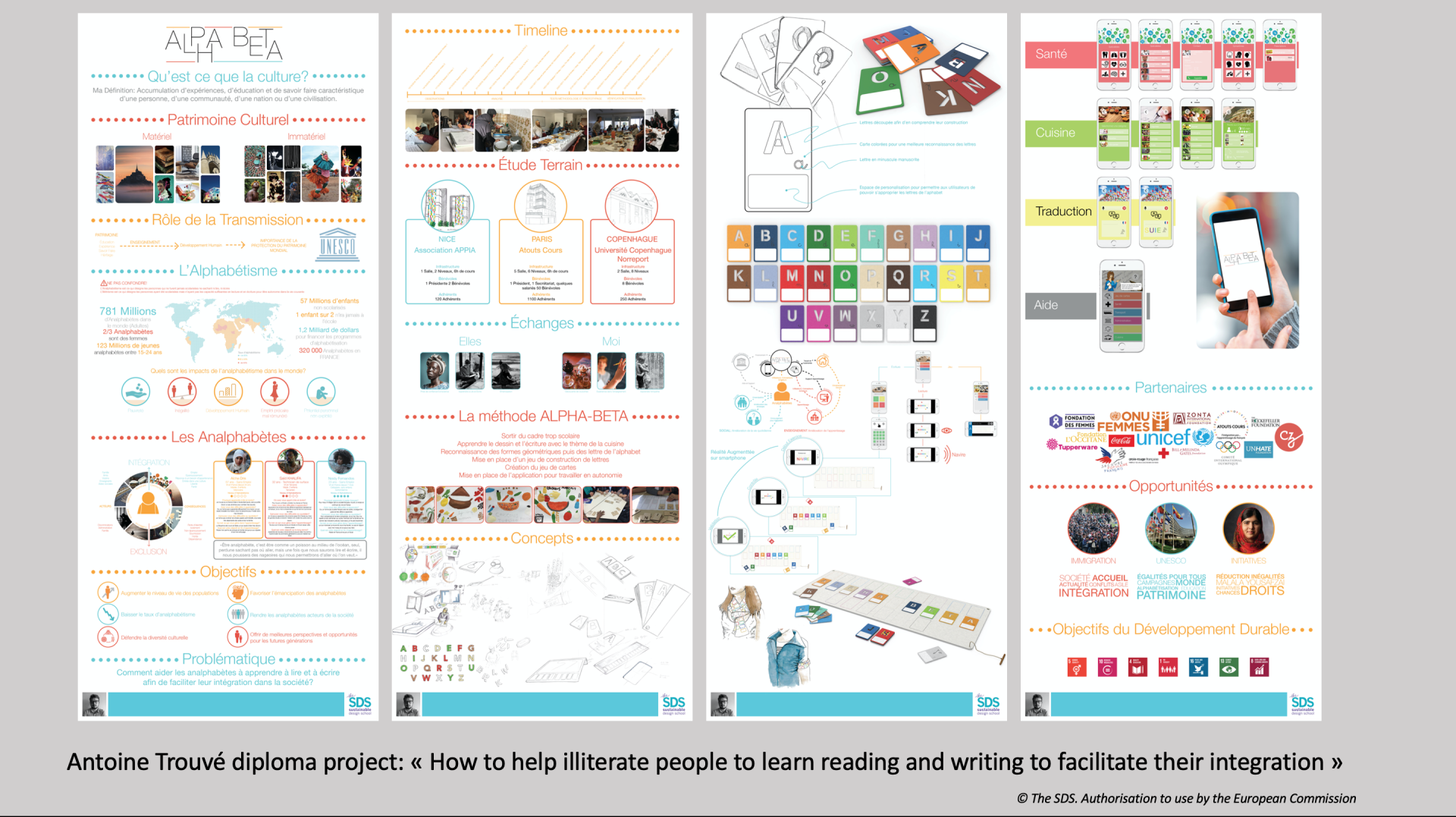 Inclusion is also a key value in the sustainable design projects because we take into consideration the people, planet and prosperity dimensions of a project. When selecting the Sustainable Development Goals that are impacted by their projects, students look at SDG1 poverty, SDG 5 gender, SDG10 inequality. We are glad to have students who presented, for their diplomas, projects to fight women illiteracy, to foster migrants vocational education, to encourage the integration of homeless people and to assist students in situation of vulnerability.