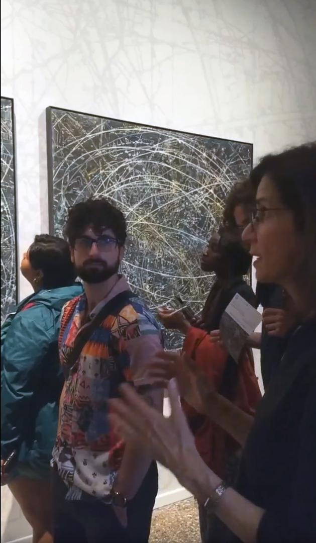 The innovative installation of the mural-sized, map-drawing hanging behind my paintings highlighted the global theme of climate change underlying my paintings in Vast Scale—Intimate Space. The wall-sized, map-drawing enveloped the viewer creating an installation that underscored how environmental sustainability is universally needed and essential to all, wherever one lives. Additionally, the exhibition is innovative in that it expands the conversation around climate change to a broader, wide-ranging group of people - the audience of an art exhibition - and, through presentations and artist talks, explores solutions with them. That important art audience is essential to getting the largest number of people involved and engaged in a positive, proactive way. People both young and old from all vocations came to my exhibition who love art and culture; they were tourists from Asia; Africa; Europe; Australia; the Middle East, Central, South, and North America as well as the local population of Venice. Whether they attended the exhibition or my presentations or both, they may not have been expecting to think about climate change or to become involved in the dialogue around environmental issues and how rural and urban space can be regenerated. Talking about specific events in my presentations brings an important message home to many people. Reaching people in as many ways as possible in order to bring about the real changes that are necessary to reach sustainability is vitally important. Highlighting the disastrous event with, when possible, the initiatives put in place to solve any future problems is essential in motivating people to be proactive. My exhibition and my artwork are proactive efforts and offer a point of entry for people not yet involved. Through the exhibition at the ECC and other venues, my artwork brought awareness of environmental issues to the diverse citizenry of many countries with the goal of encouraging positive action and sustainability.