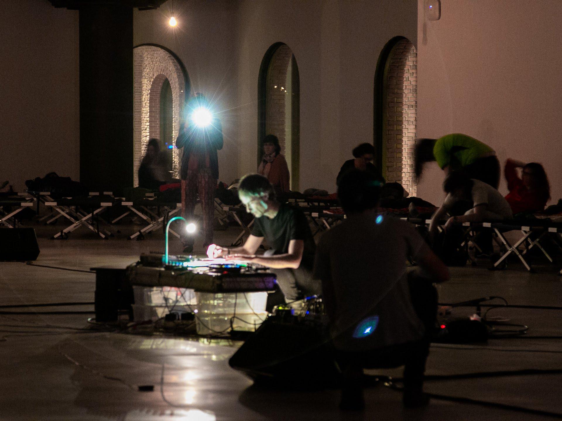 NANA is a participatory performance for sleepers. It is a durational concert of experimental music, for listeners who are awake, asleep or in slumber. The concert lasted eight hours, the recommended time for a restful sleep. This activity has different phases according to the sleeping rhythms and ends with a breakfast for all the participants, the artist and technicians.
