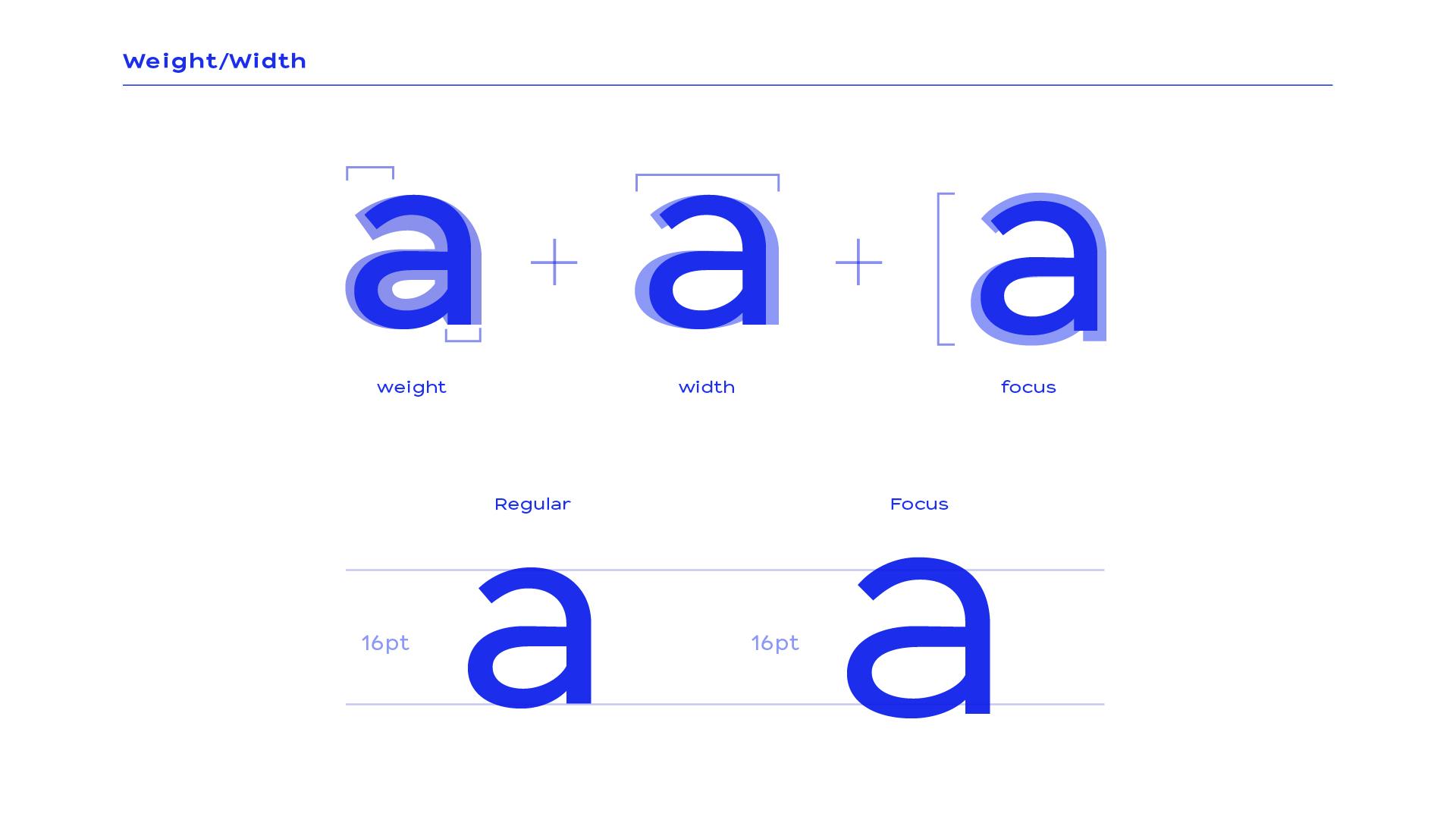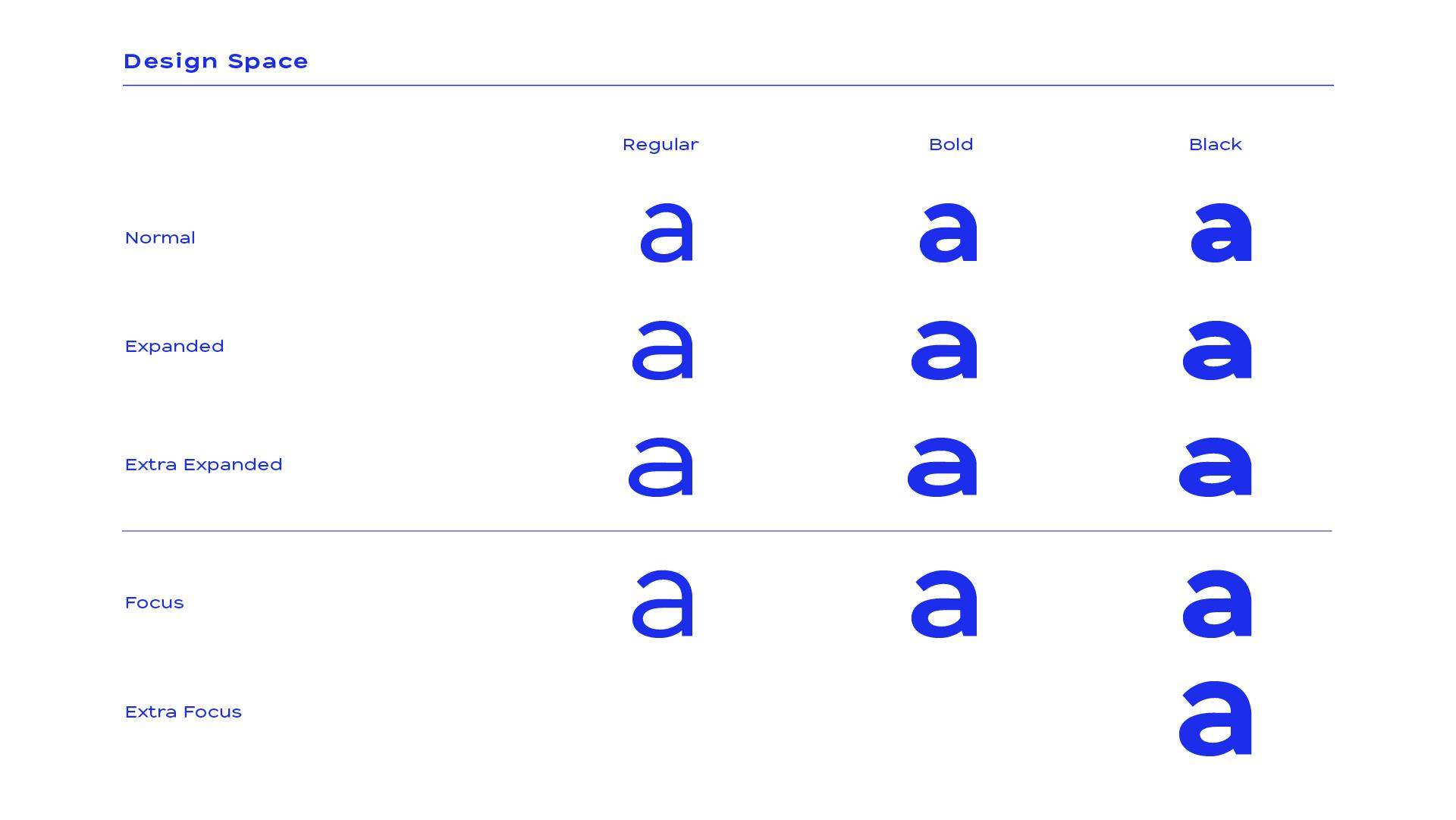 The innovative aspect of the project appears on the level of the typeface as well. It contains a Focus weight which is not just a wider and taller weight but it is an optically enlarged version of the typefaces. The interpolation of this creates a zoom effect on the targeted words attracting the attention of the reader.