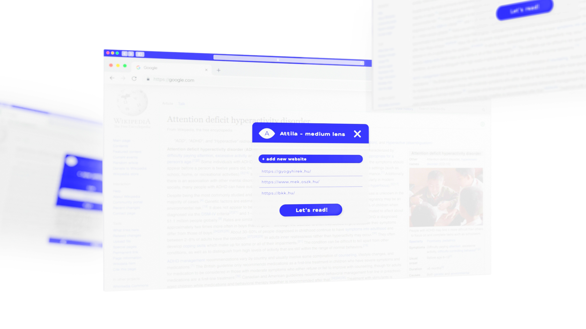 The different parts of this tool are the result of one-year-long research. Several functions have been developed after understanding the phenomenon of ADHD and learning about its effects on the quality of reading. A customizable typeface has been created to help with reading problems caused by this condition. Its strength lies in the customizable typeface.