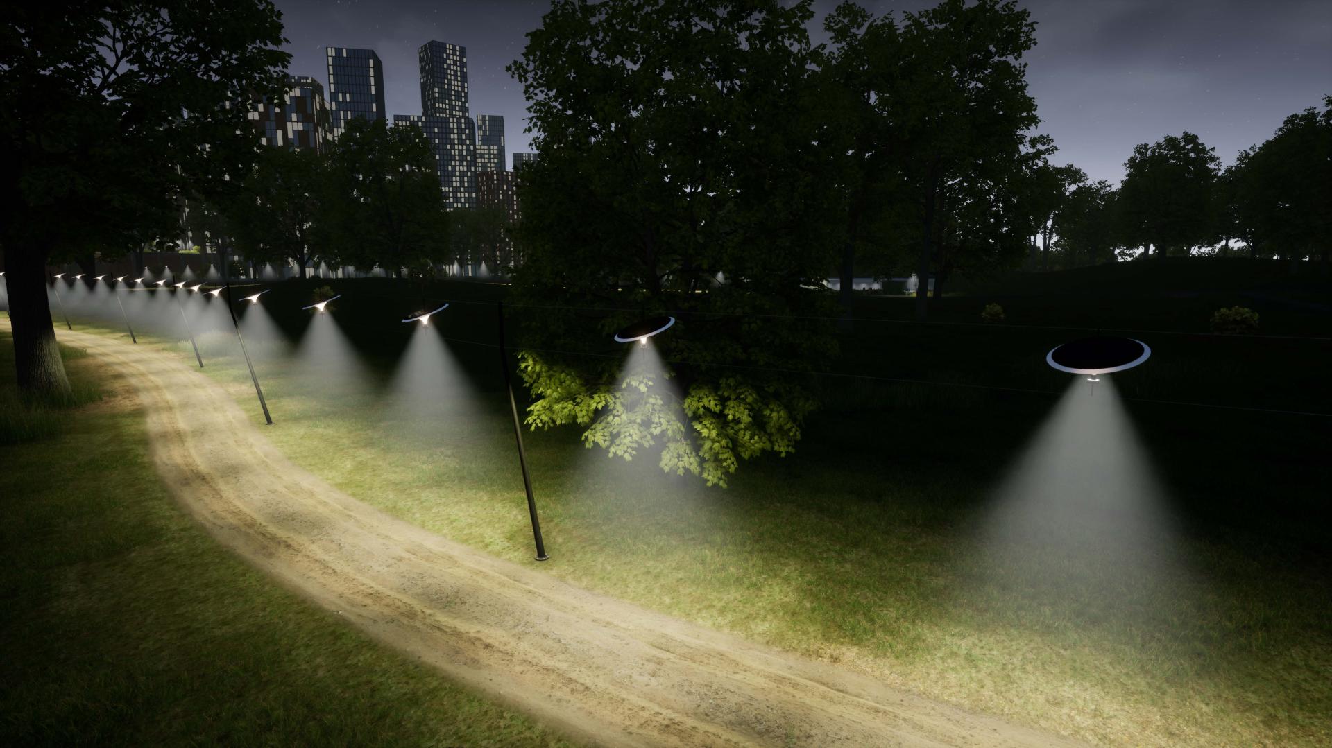 An experience by day By day, you can experience the spectacle of lanterns moving towards the sun. The underside of the ring of the lighting module lights up like a halo when you are lying or walking in the park. Neighbouring residents also have an exclusive view of a subtle play of light from above. So, there's always something going on during the day. In addition, the sunlight ensures that the lights can turn on in the evening. A guide at night The lamps can be programmed in such a way that the light can dim, change colour or become brighter when people pass by. The latter makes them feel safer in the dark at night. The gallery of light serves as signage, as a guide at night and it forms a connecting route from A to B. With this project, the designers make us think about sustainability in a different way by allowing us to experience an alternative – dynamic and poetic lighting designs that trigger amazement and imagination. That is the power of good design and experimentation, in which VANTOT's creativity and sense of aesthetics always go hand in hand with technology. Smart We show that you can make public spaces more attractive by making lighting more interactive in all sorts of ways. The potential extends further: It pays for itself. After all, solar cells produce energy, light is fed by light. You will no longer have to connect the light to a grid.