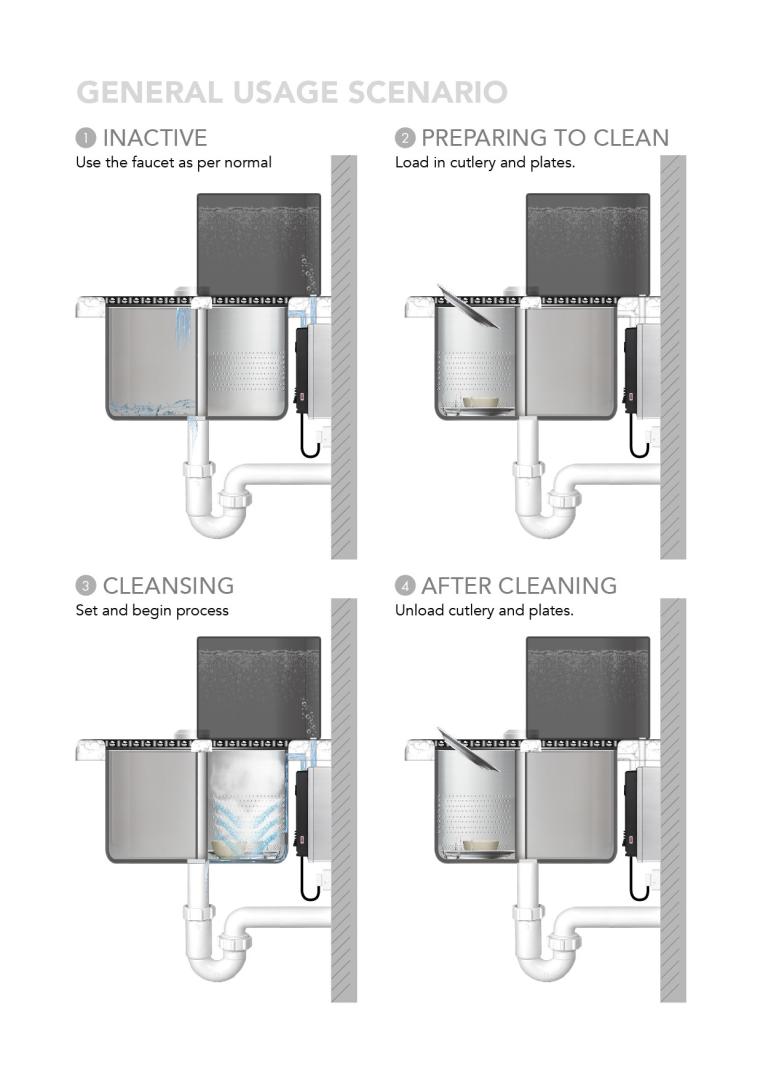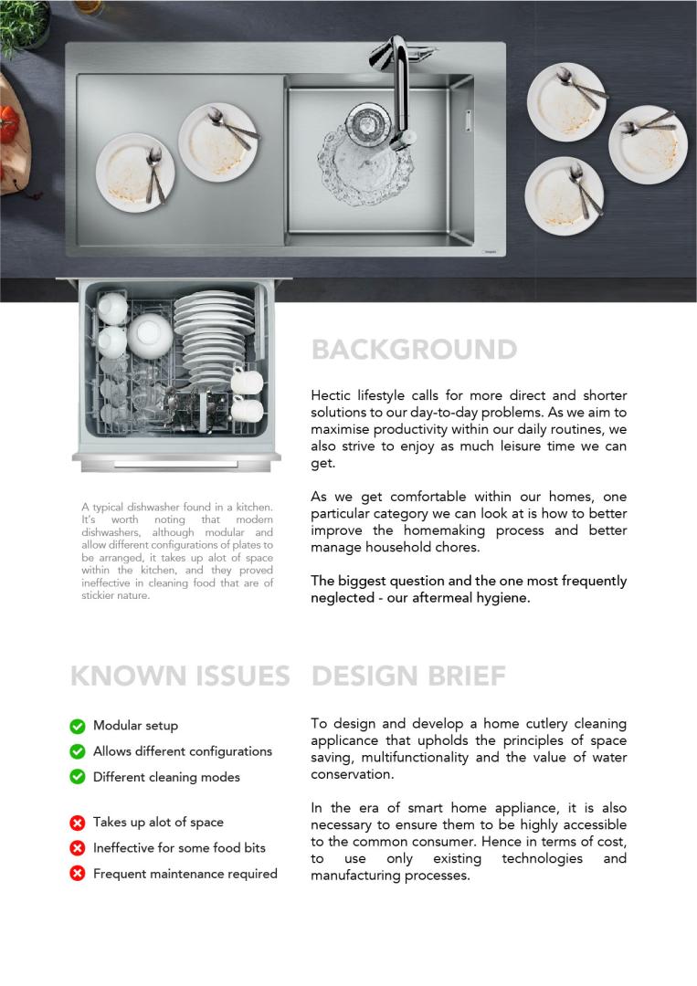 The objective is to design and develop a home cutlery cleaning applicance that upholds the principles of space saving, multifunctionality and the value of water conservation.