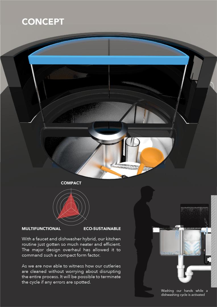 As a dishwasher built-in within a kitchen sink, by unifying cleansing into a single station the prospect of space saving appliances in our kitchen just gotten closer to reality.
