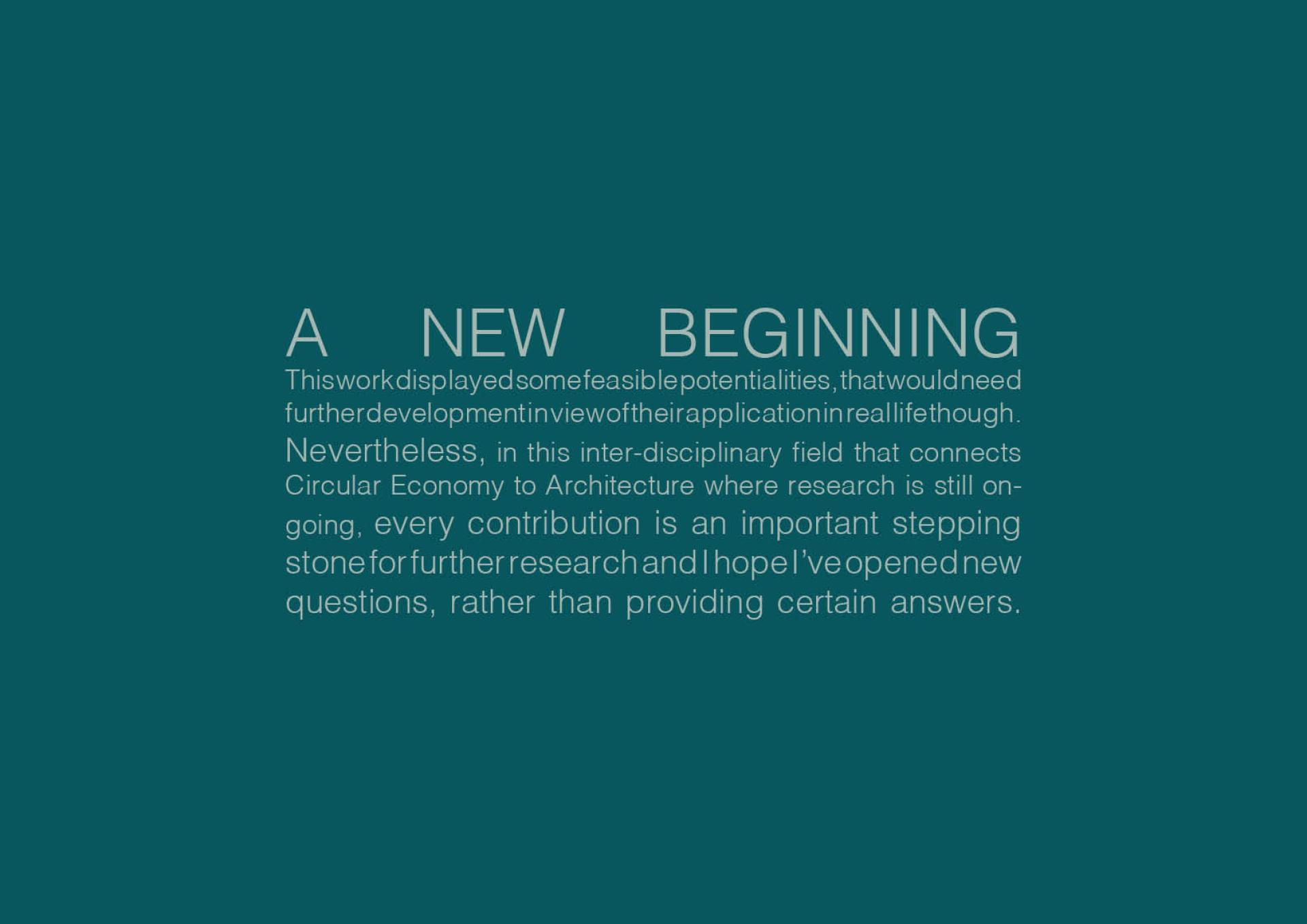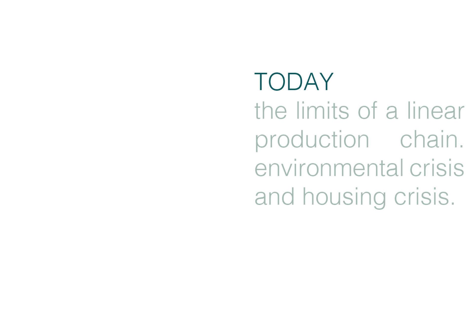 Cities all around the world are facing major challenges when it comes to rapid urbanisation, ageing populations, loneliness, climate change and lack of affordable housing. The construction sector has a great impact on the environment, as just in Europe up to 30-40% of urban solid waste is construction and demolition waste. Moreover, a third of urban dwellers, corresponding to 1.6 billion people, could struggle to secure decent housing by 2025. Therefore, thinking about an alternative affordable and sustainable construction method becomes crucial.Over recent decades the concept of Circular Economy strongly enters the industrial sector as well as the architectural one. Still the theme is an on-going process though, asking for more innovation both in technological and business terms.