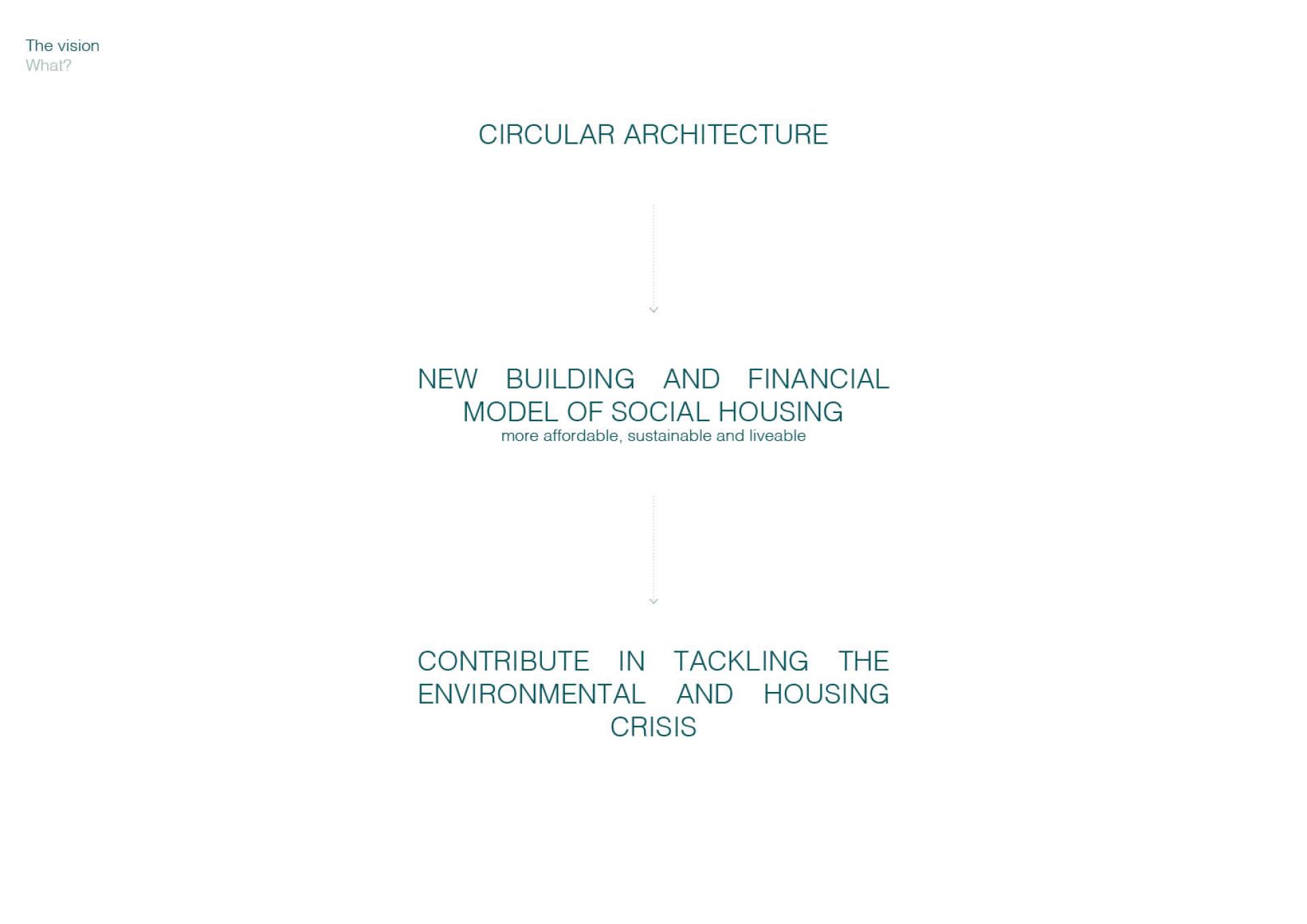 The project thus proposes a model to rethink how we design, build, finance and share our future homes and cities, in order to allow for cheaper homes to enter the market, make it easier to live sustainably and affordably, and ensure more fulfilling ways of living together. It specifically envisions: