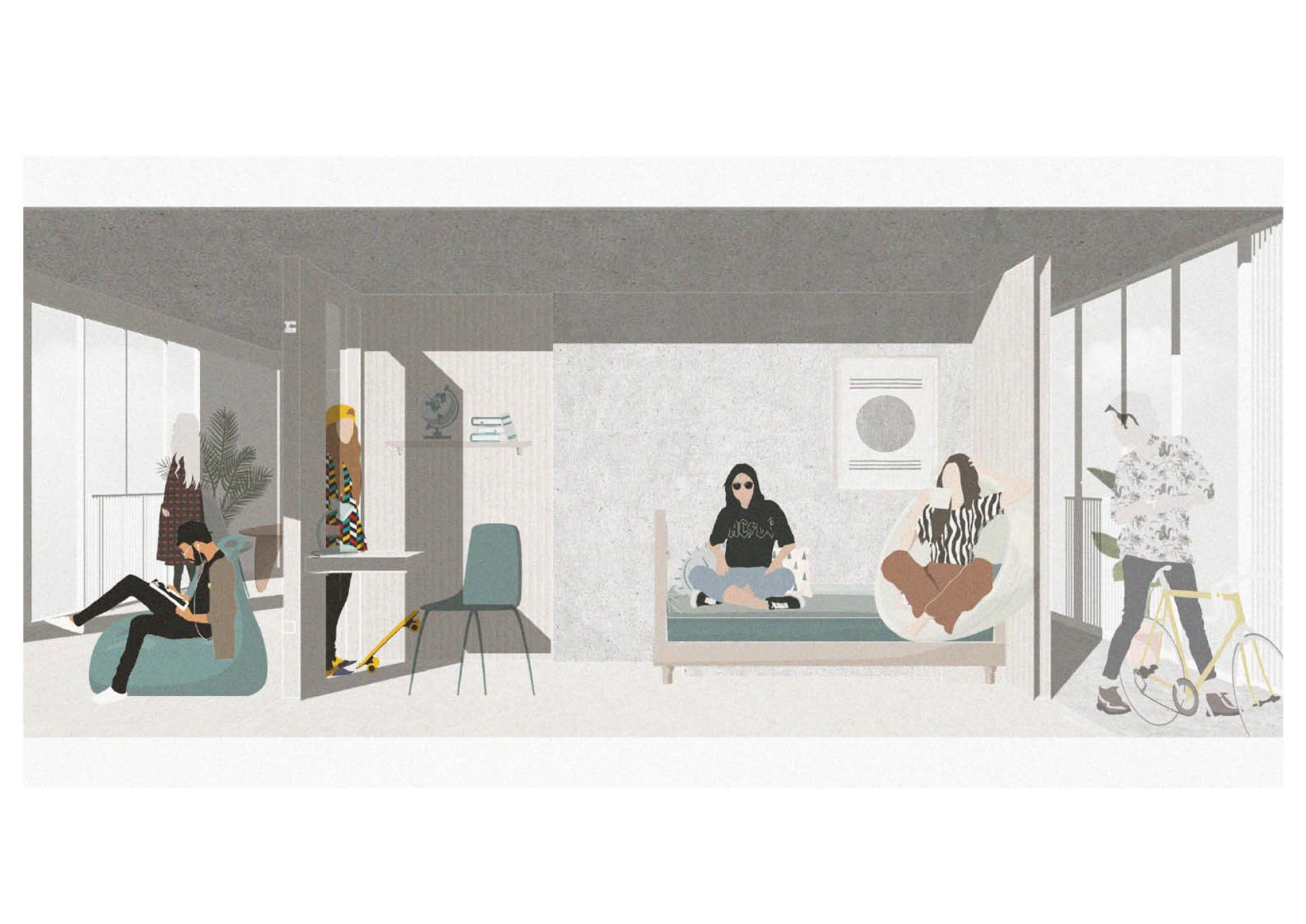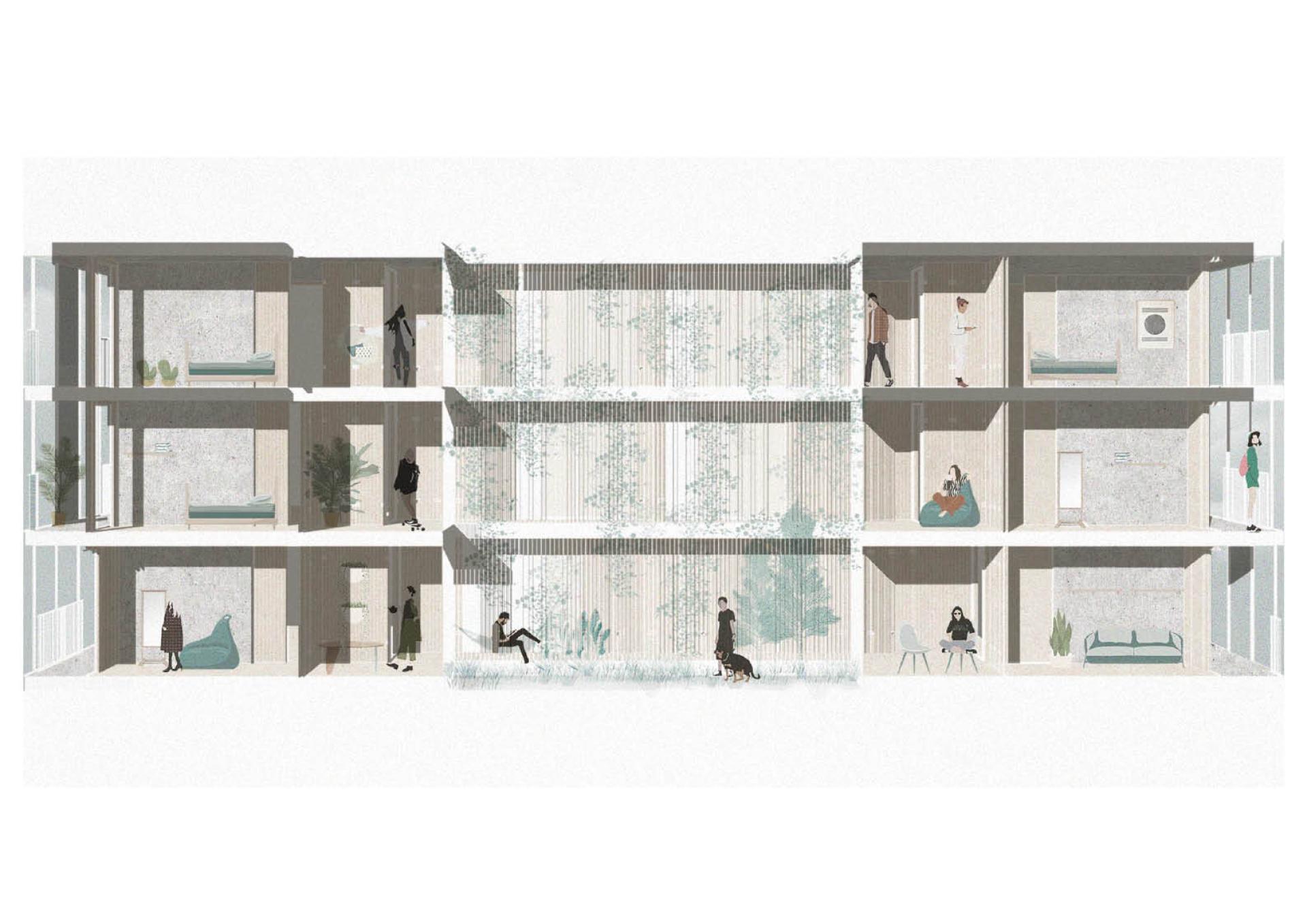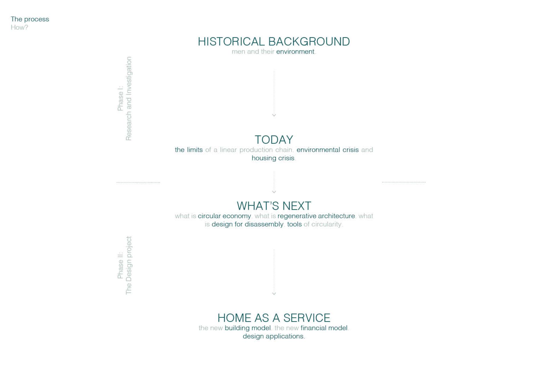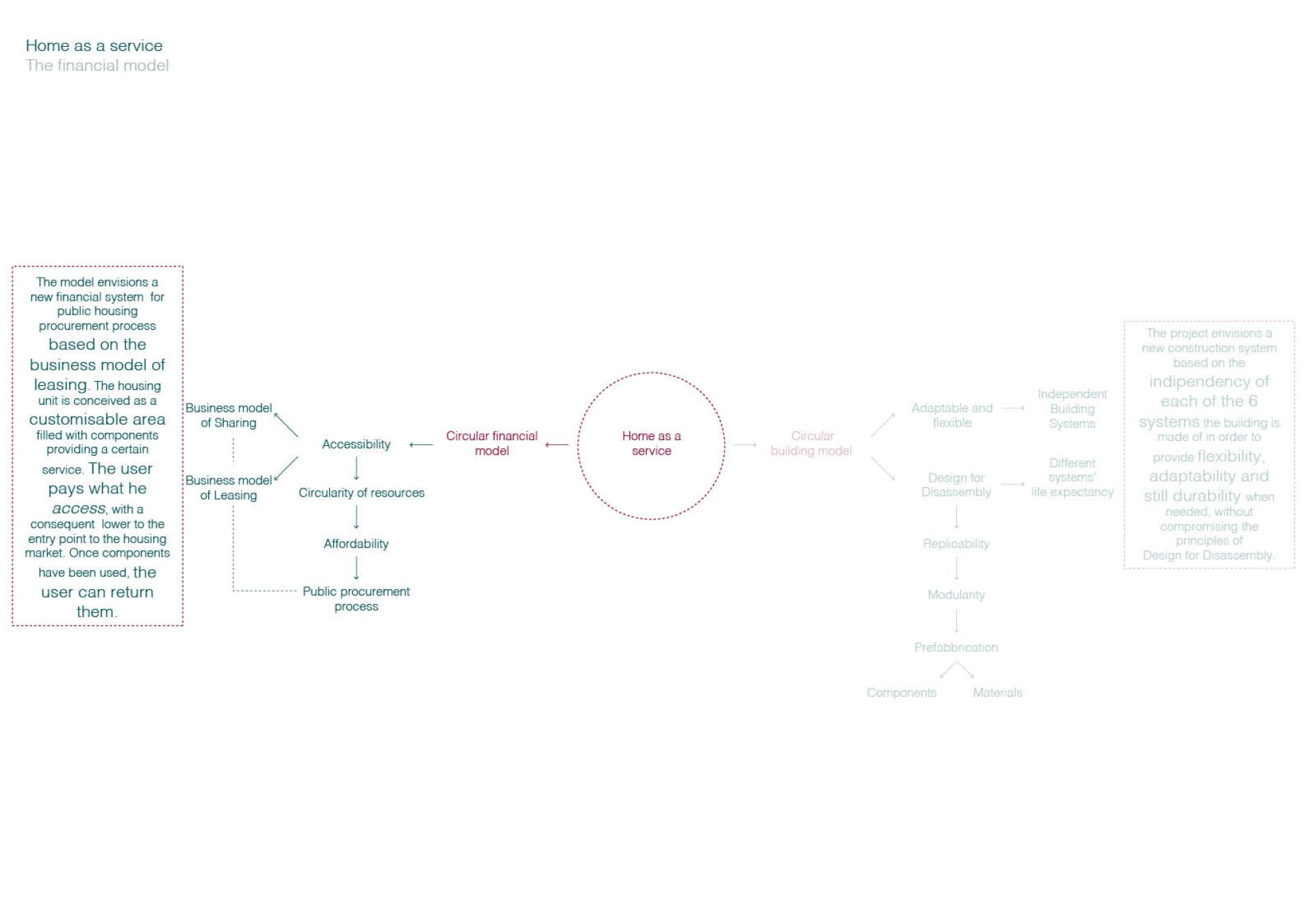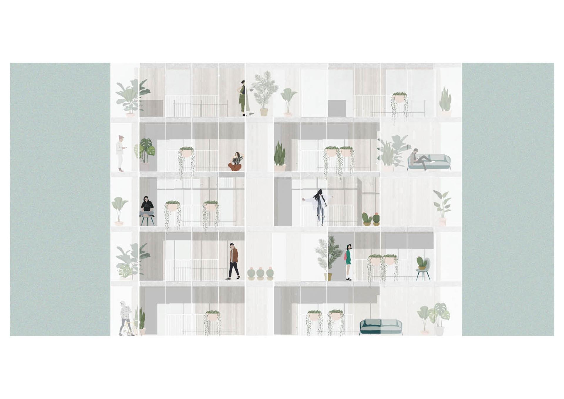 Cities are facing major challenges as rapid urbanisation, loneliness, climate change and lack of affordable housing. Thinking to an alternative way to build and inhabit our future homes is thus crucial. Therefore the project envisions: a new circular prefab and modular concrete building structural system; an independent liveable double skin facade to launch an aesthetic of design for disassembly; a new financial model based on the concept of leasing to lower the entry point to the housing market