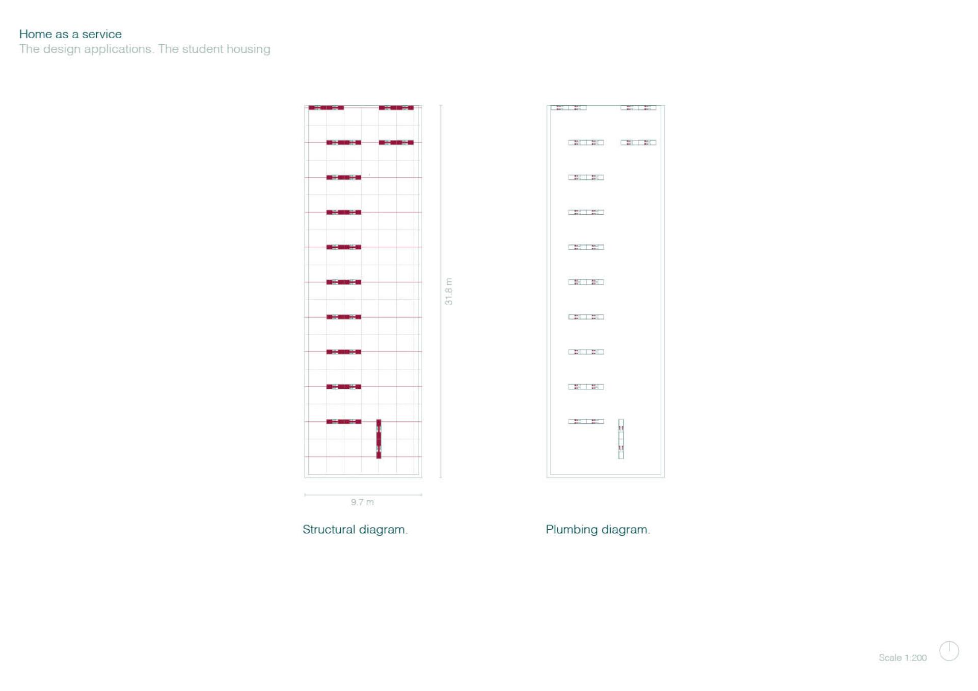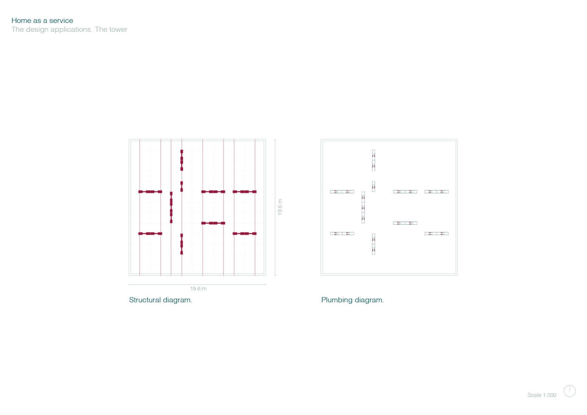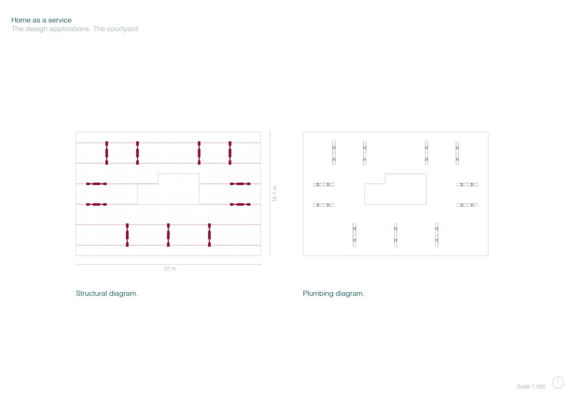 Moreover, the design of specific structural shear walls shaped in order for pipes to pass through them permits an high degree of spatial adaptability, and thus demand adaptability, over the entire operative life of the building, as services could be eventually replaced wherever there's a structural wall, without any need of intrusive maintenance.