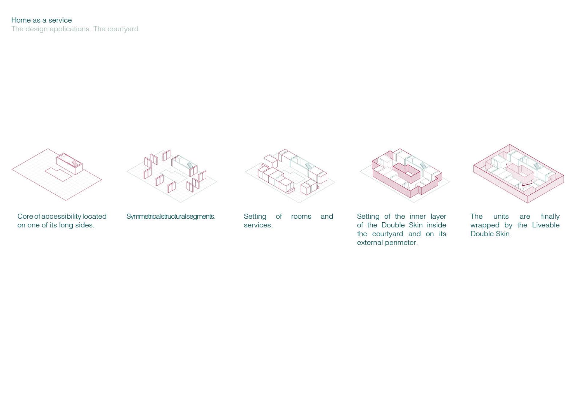 In this regard, all joints have been designed to be mechanic and visible, so that each independent building system can be easily maintained, with no need for intrusive maintenance and thus huge economic and energy savings. Moreover, in case of double skin maintenance, users can still access their existenzminimum, with no need to move temporary somewhere else.