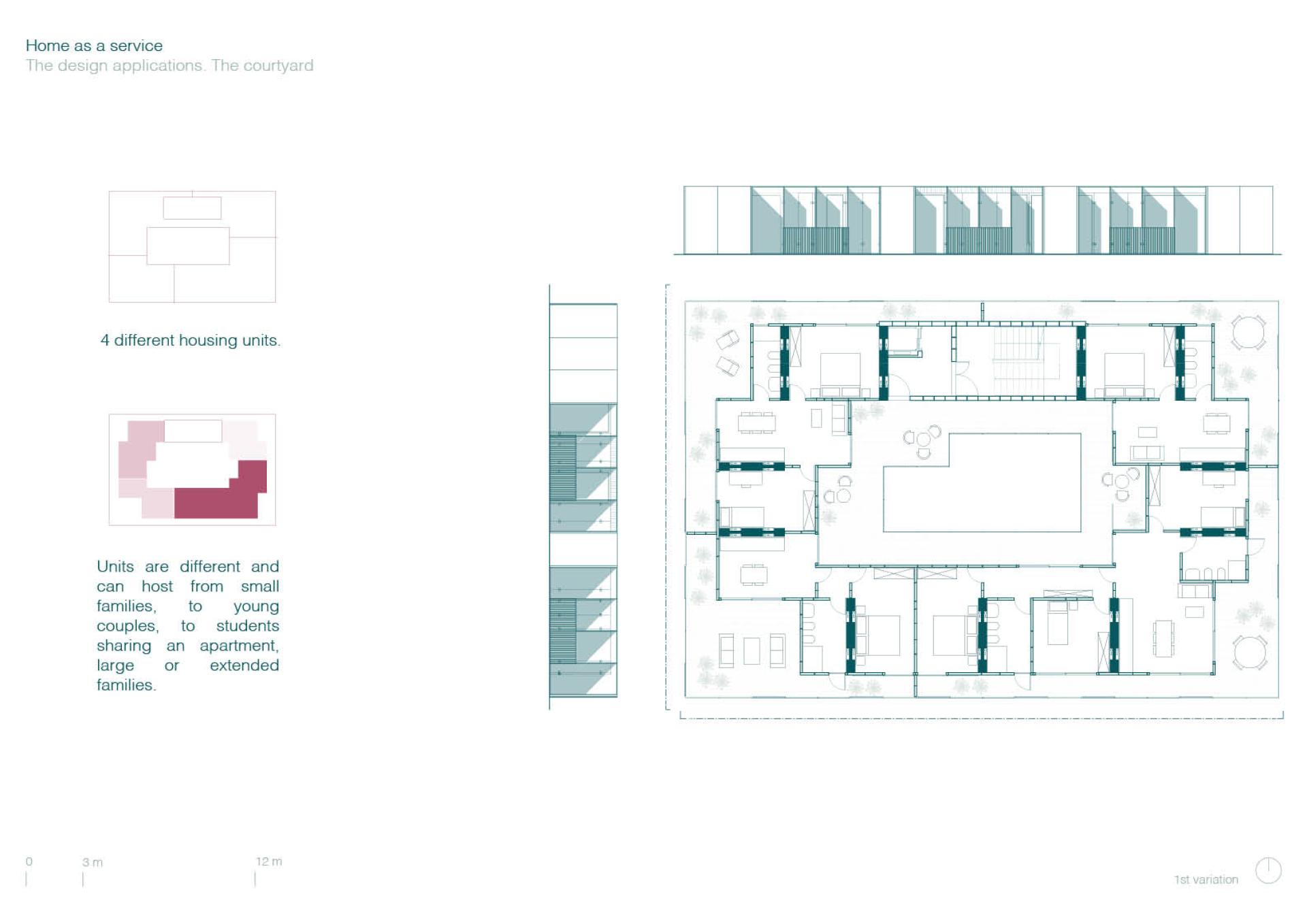 The built social housing unit could be sold as it is and be ready to be reused, without any expenditure in economic and energy terms. Swapping dynamics between units could happen as well: two users living in the same complex could meet their mutual needs and decide to swipe their apartments. When the needs of the new user are different, the unit could be totally changed, due to its spatial flexibility.