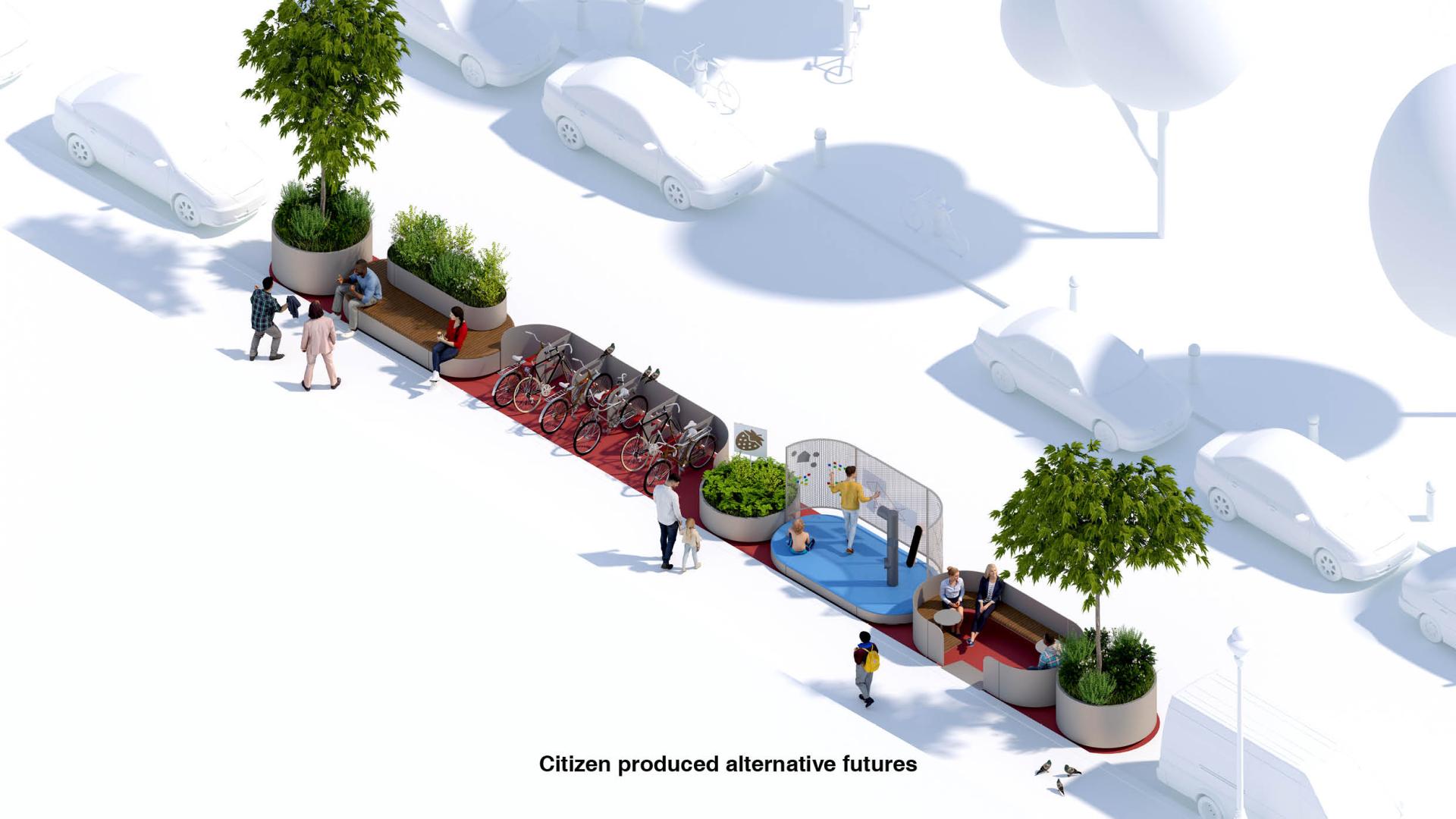 A comprehensive geography of challenges citizens are facing is drawn, street by street, using parametric geo-spatial tools. Existing trees, need of bike infrastructures, or lack of urban furniture can be measured. Each parking spots of the city is being allocated a program forming an alternative reality that people can grasp and be inspired to claim ownership.