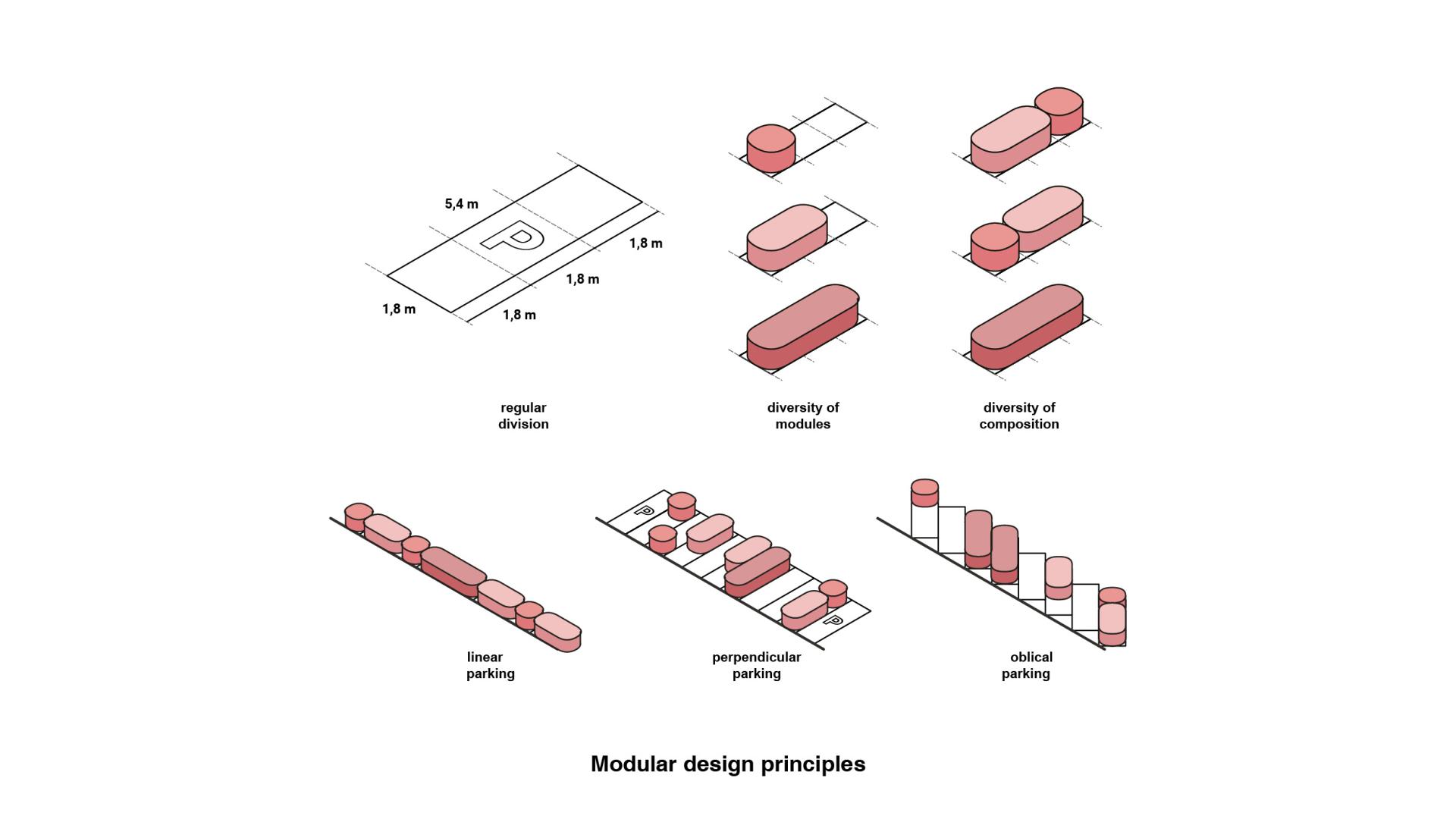 Existing proposals of similar modules, called parklets, are centered around the idea of temporality, but citizens involvement in their public space ought to project durability. The design of the modules reflects the operating systems in which we designed them to operate. As the modules will be transported across the city, activating streets and people along their way, they need to be durable in their matter and forms, outside of the aesthetical realm of the temporary.