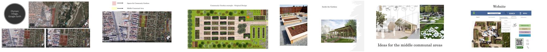 Hadrian's Community Gardens project and design covers many values and dynamic aspects of a monument to be brought out and to be used in multiple different ways. In a plan to be displayed below, it appears that both the aesthetic value and the multifaceted uses of the chosen site of the Reconciliation Square in the Olympic Village have been taken into account. The side parts of the square, six in total, three on each side, will be transformed into six different Community Gardens and the central bigger parts will be made into rest and fun spaces to be used not only by the cultivators but by all. Water, trees and picnic areas will provide an overall hig- quality experience to the visitor of the Olympic Village and will improve the face of the obsolete,abandoned and only central square of an overall obsolete community, strengthen the relations of the local people and host not only environmental but also cultural events.