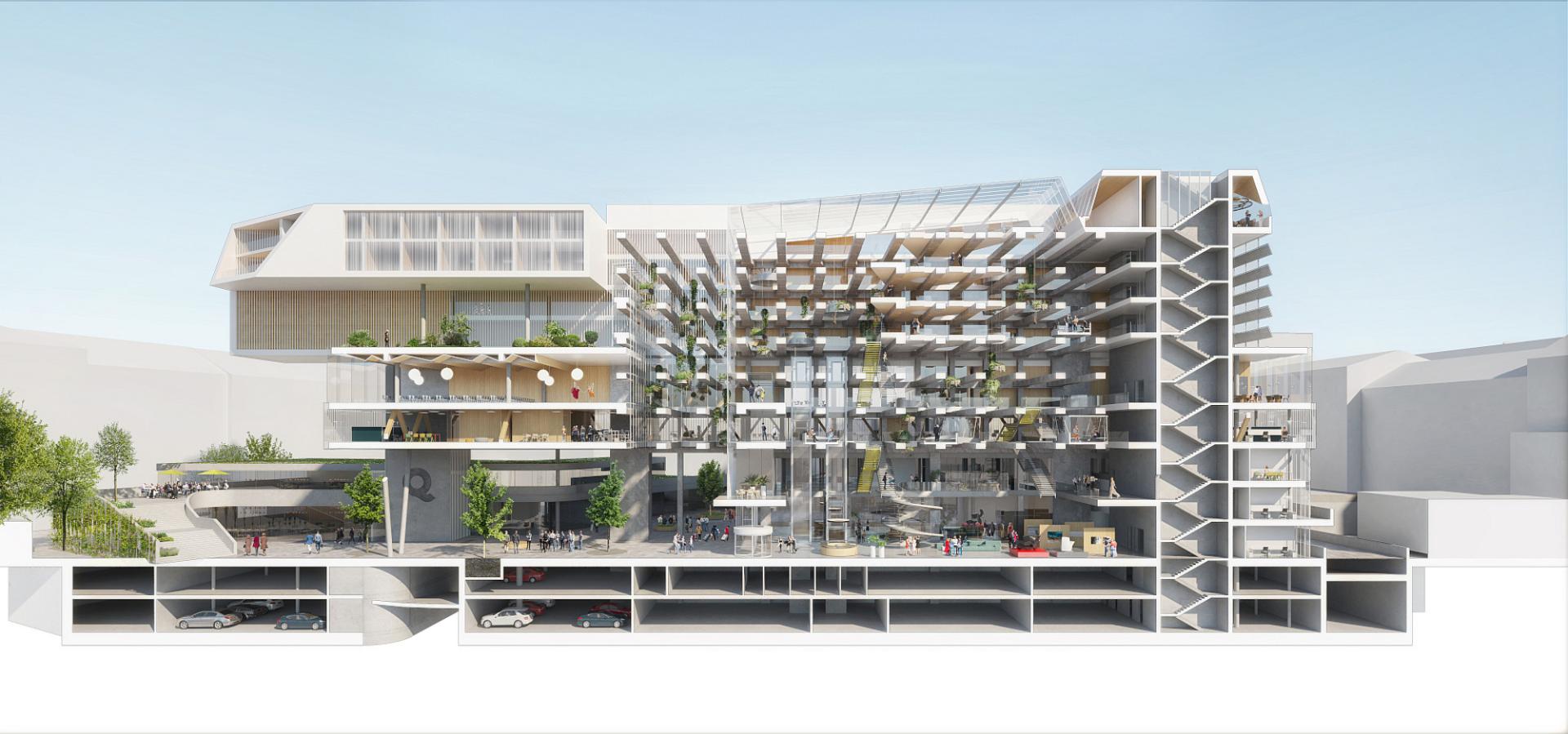 Not only are we trying to build sustainably, but we also want the building to be sustainable. Our aim is to eliminate the "grey dullness" of an old office building and make the passage, which is used by up to 10.000 people on their way from the main train station to work or the city centre, greener and more welcoming. The new quarter will contain a lot of wood constructions, open and green outdoor spaces, natural lighting, and air conditioning.