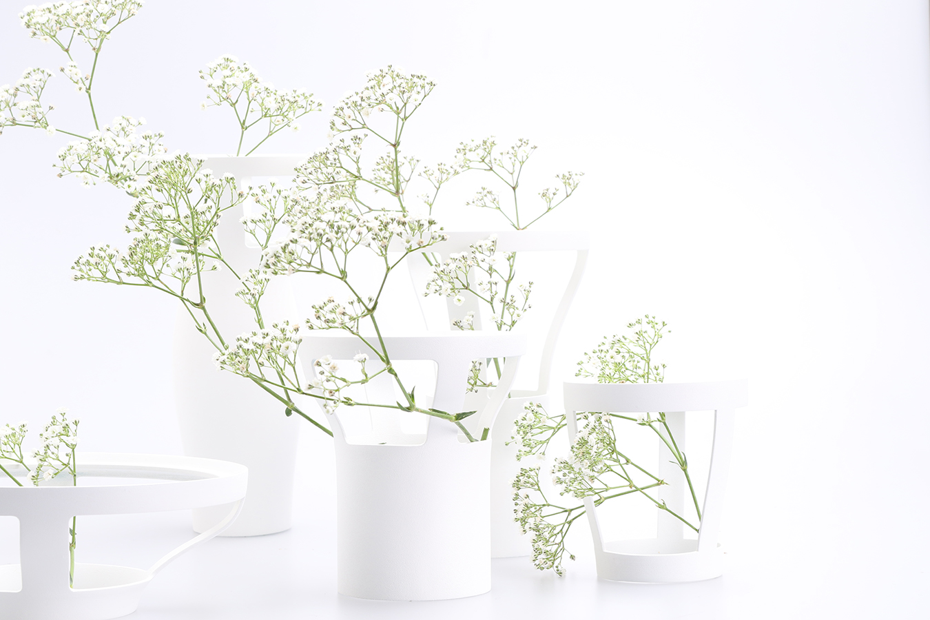 What would happen if we removed matter from objects? Empty material develops the idea of dematerialisation as a response to the hyper-production and the lack of empathy for the environment of our time and proposes a collection of vases where the main material is emptiness.Its flower-filled interior occupies the space and appropriates the design, creating a unity between the artificial and the natural. The objects will be as changeable as nature is.When there is no matter, there is life.
