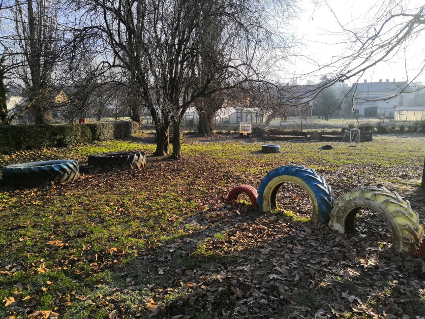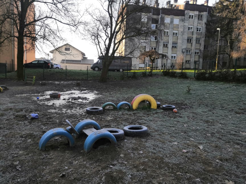 Idea is for the whole community to be part of the planting activities and creation of the additional contents for the yard- children and their parents/guardians, civil society organizations, trade students and other citizens will be able to participate in order to connect with each other and learn valuable lessons through co-working and creative use od resources. The yard area that is covered by the design is 4,083 m2. About 20 trees, 10 (mostly berry) bushes, 30 vegetable seedlings and over 300 pieces of other plants will be planted in the yard.