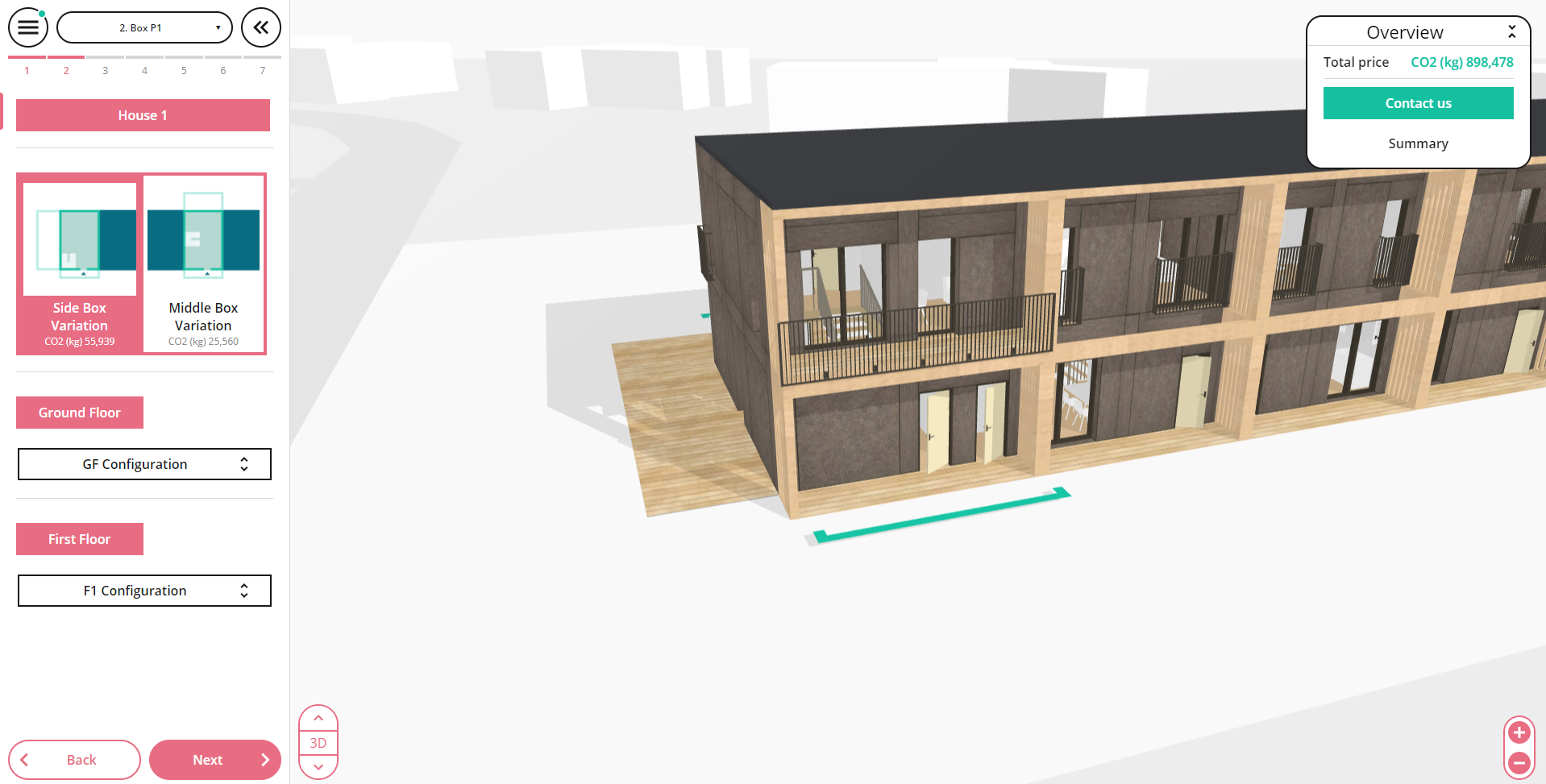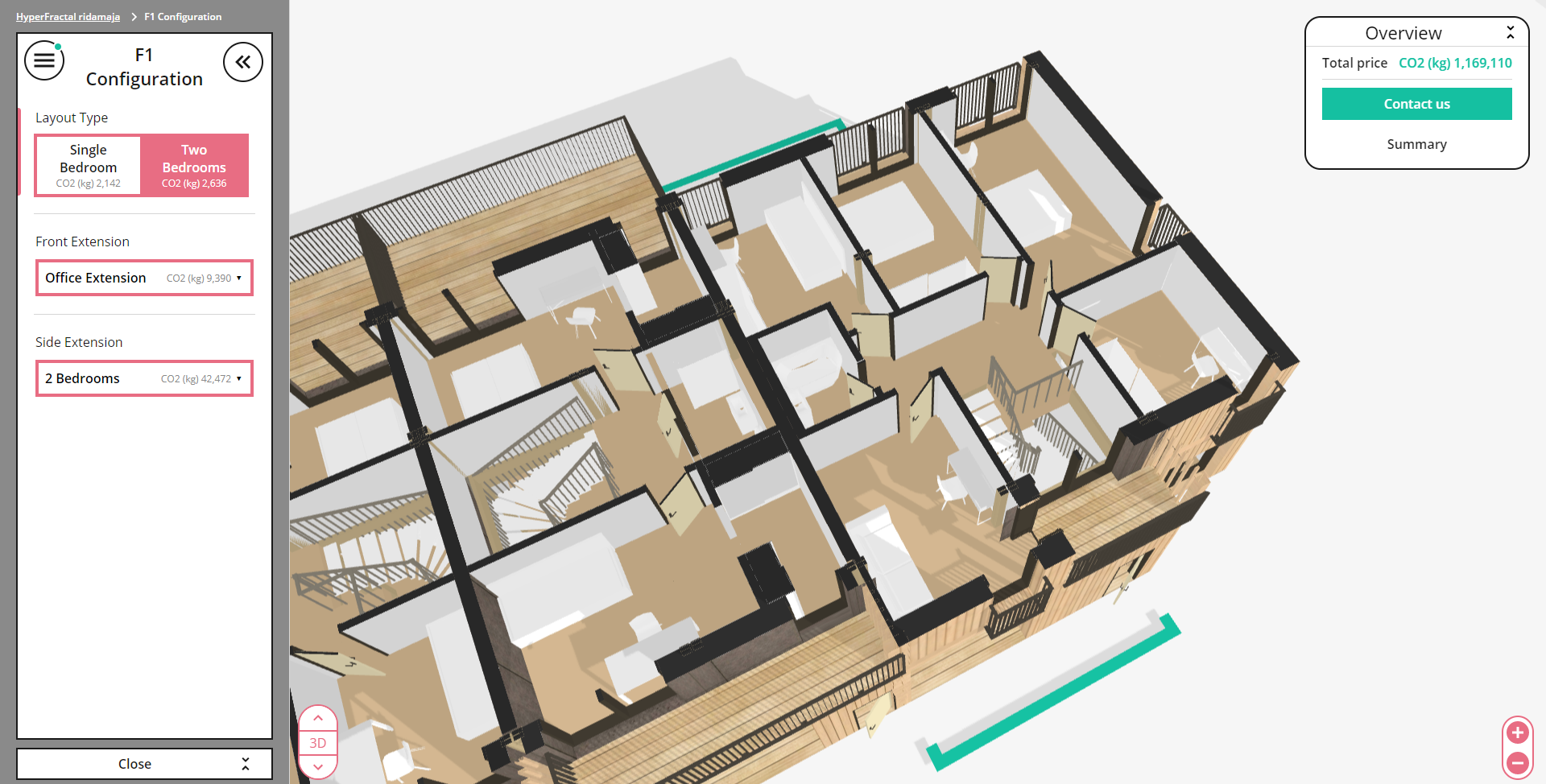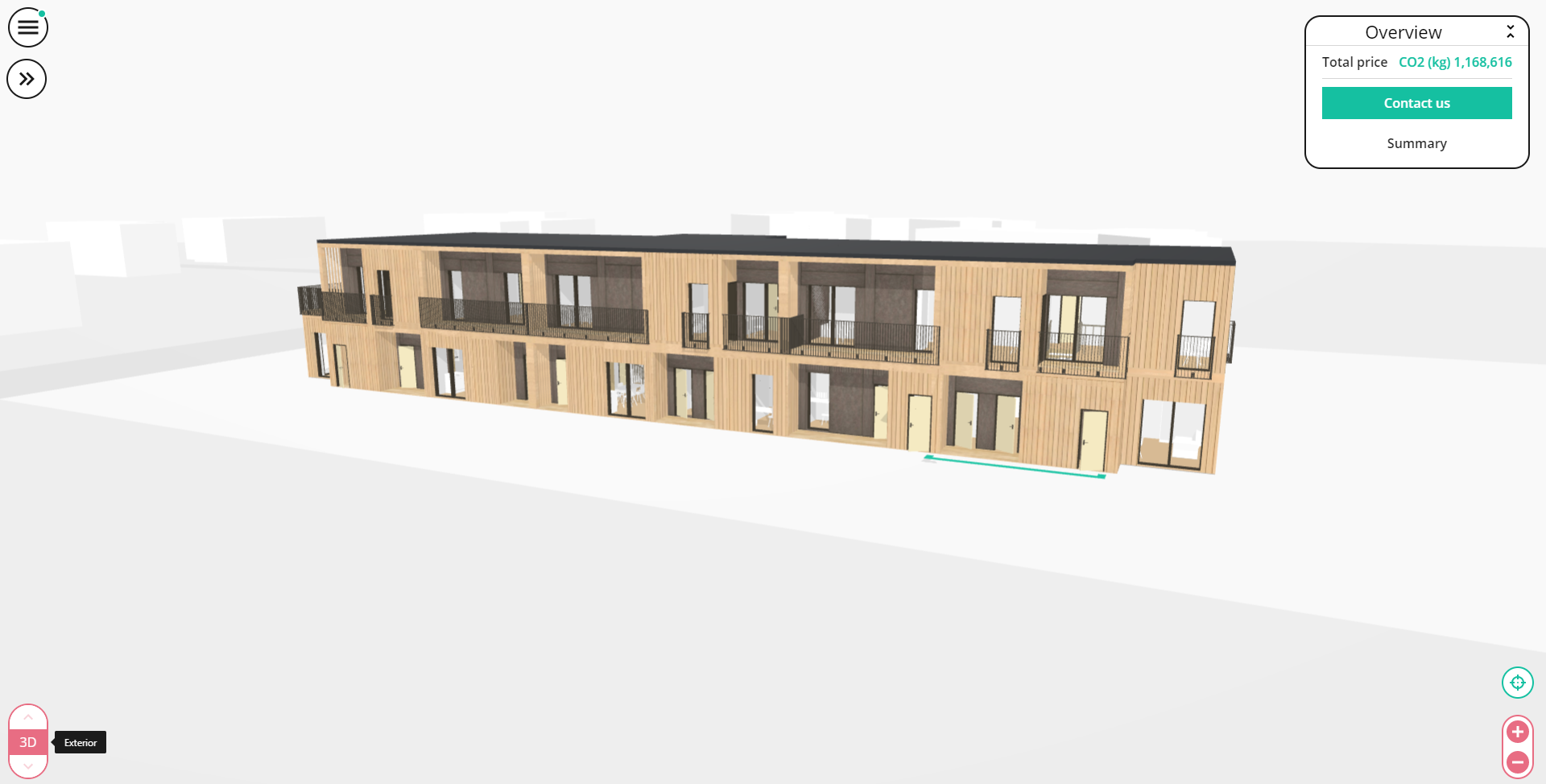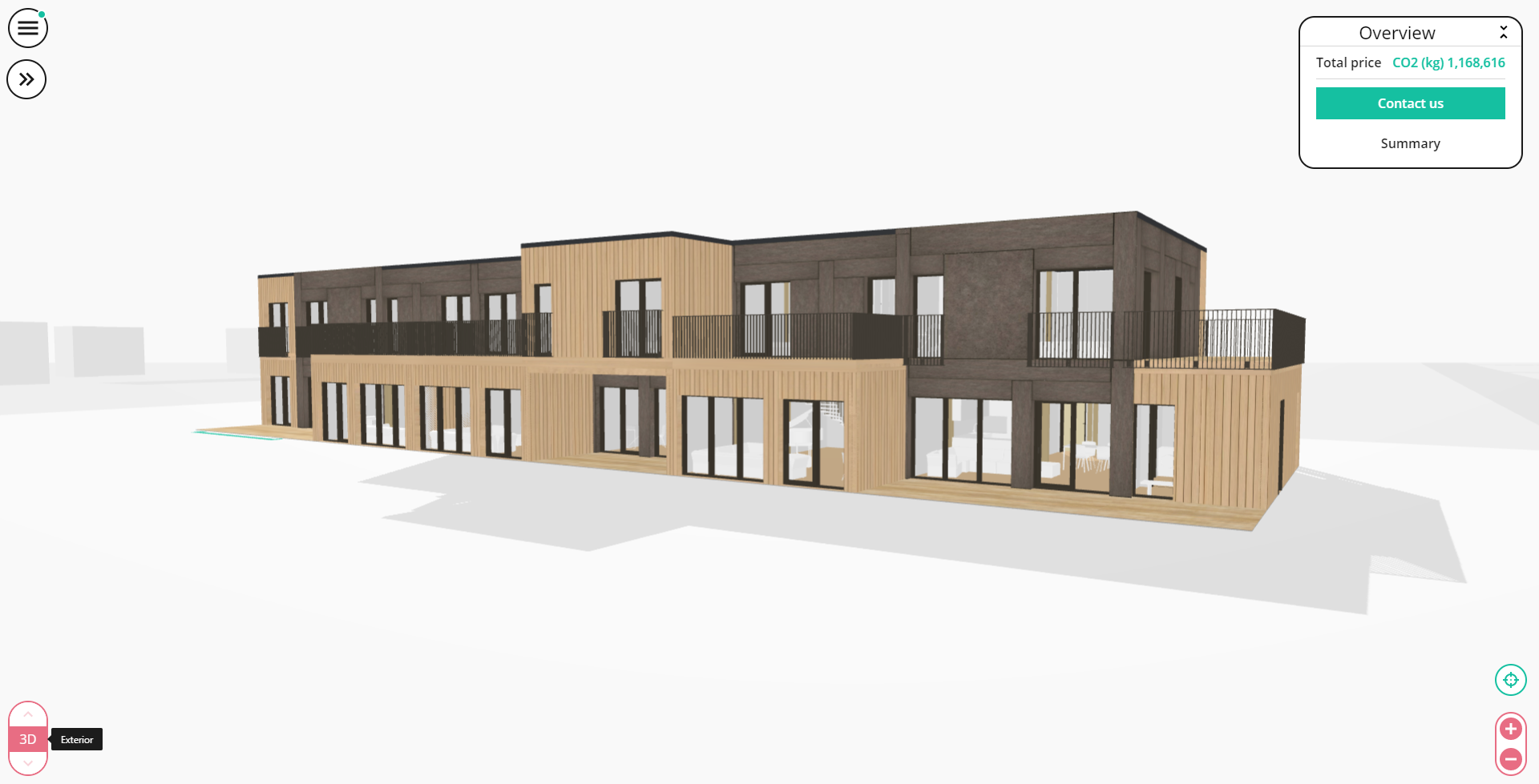With Creatomus as our product visualiser we are able to calculate these parameters and offer the information straight to the client with live updates, while the client is choosing the layout design. By doing this we offer the client to see how their decisions change the price of their building and at the same time what effect they have towards the environmental footprint.