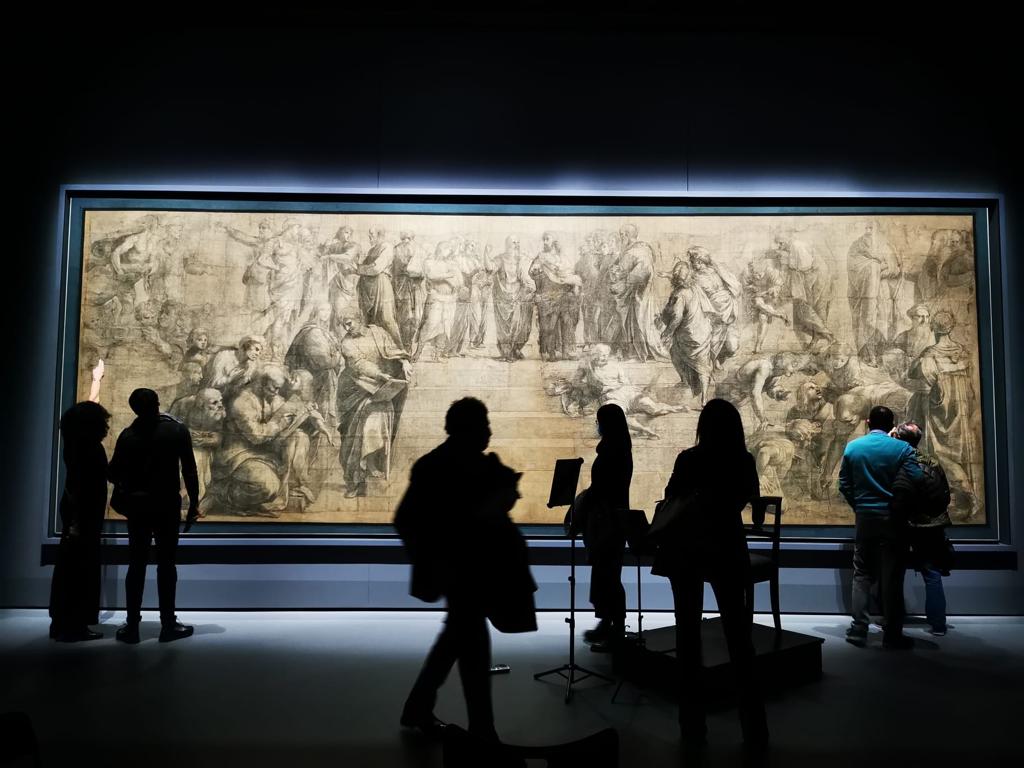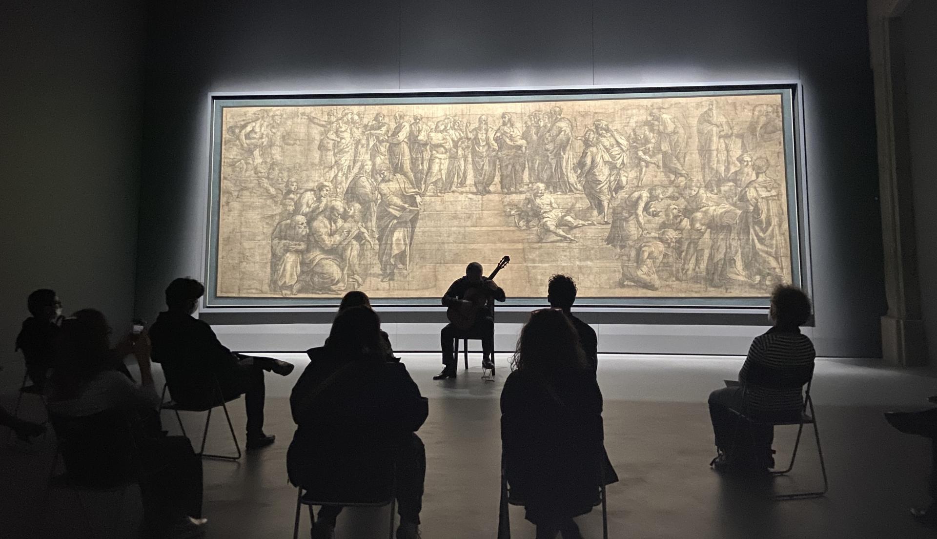 In Milano, the experience has been incredible for the participants, who had the chance to listen to the concerts of soloists, duos and quartets in front of the recently-restored and magnificent Preparatory Cartoon of the School of Athens by Raphael, in an intimate setting. The tour around the halls of the Ambrosiana then focused on a selection of artworks, curated by the Director of the Museum: the Adoration of the Magi by Tiziano Vecellio, The Madonna of the Pavilion by Sandro Botticelli, The Madonna Enthroned with Saint Ambrose and Saint Michael by Bramantino, The Rest on the flight into Egypt by Jacopo da Ponte, the Vase of Flowers with Jewel, Coins and Shells by Jan Brueghel the Elder, and Leonardo Da Vinci’s The Portrait of a Musician and the Codex Atlanticus.