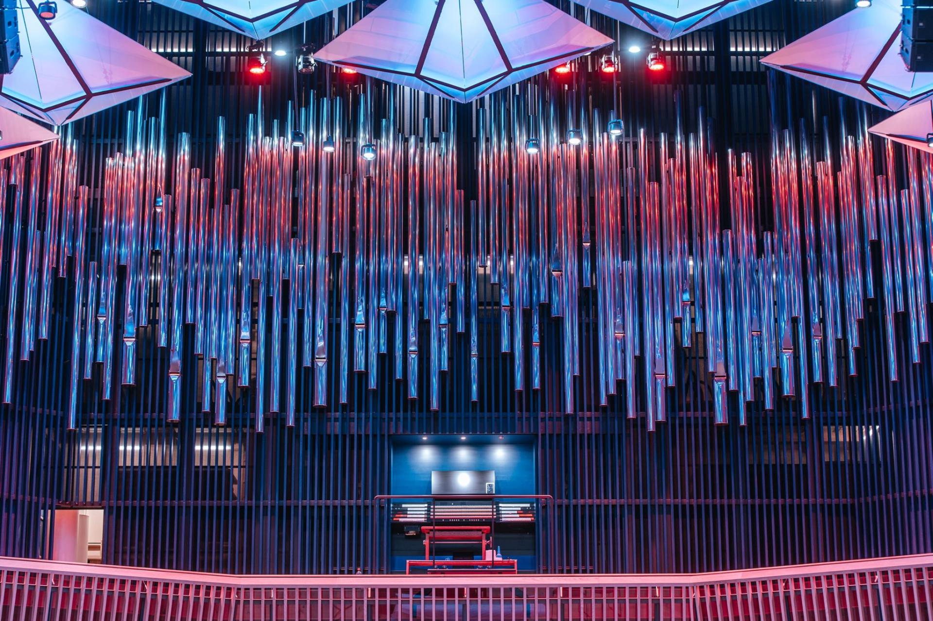 The total area of the building is 6883 square meters, of which 76% of the premises are intended for the needs of the school, but 24% - for the provision of the functions of the concert hall. In the Great Hall, where 600 spectators are provided, two unique musical instruments have been installed – acoustic concert organs and the world's largest vertical concert piano.