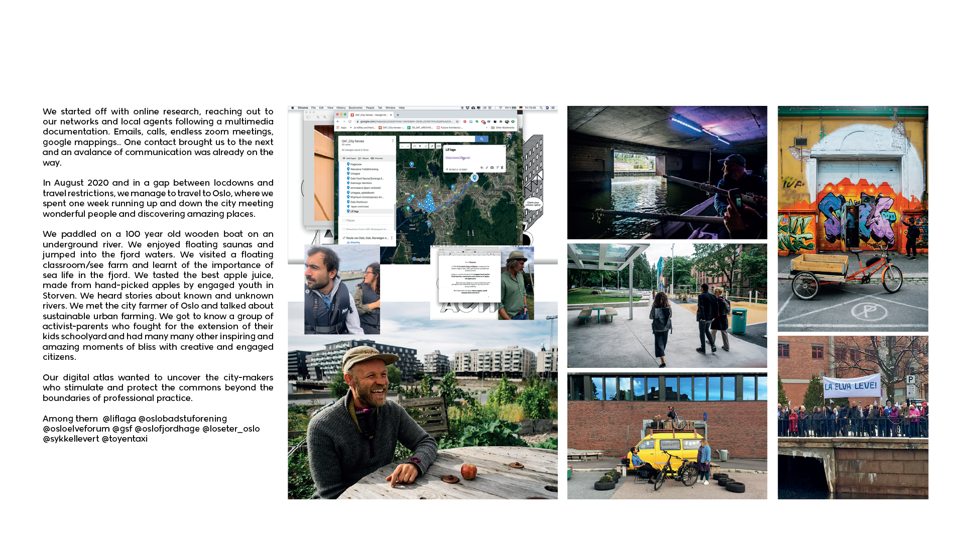 In the midst of the current COVID-19 pandemic, climate crisis, Brexit, walls and floating sea barriers, and, in a general fear of otherness, our capacity to imagine ways to move forward or think of a solution by design is critical. In this context, current generations have the duty to propose alternative futures and forms of existence that are not based on extractive technologies and economies, learn from practices that foster complex connections through conviviality and sustainable development. We want to contribute to the critical thinking of our role as architects and researchers as agents of change. Hence, investigating the soft systems of cities, the potential of local communities to reinvent common space-making and see how local initiatives are mitigating different faces of the crisis developing sustainable solutions through resilience and care. We look at those practices as ‘rituals’ because they strengthen the capacity of collective action to reach ambitious goals like climate justice, inclusion, sustainability; and ‘radical’ because they are coming from imaginative and creative scenarios, but at the same time, they transform their contexts and beyond.