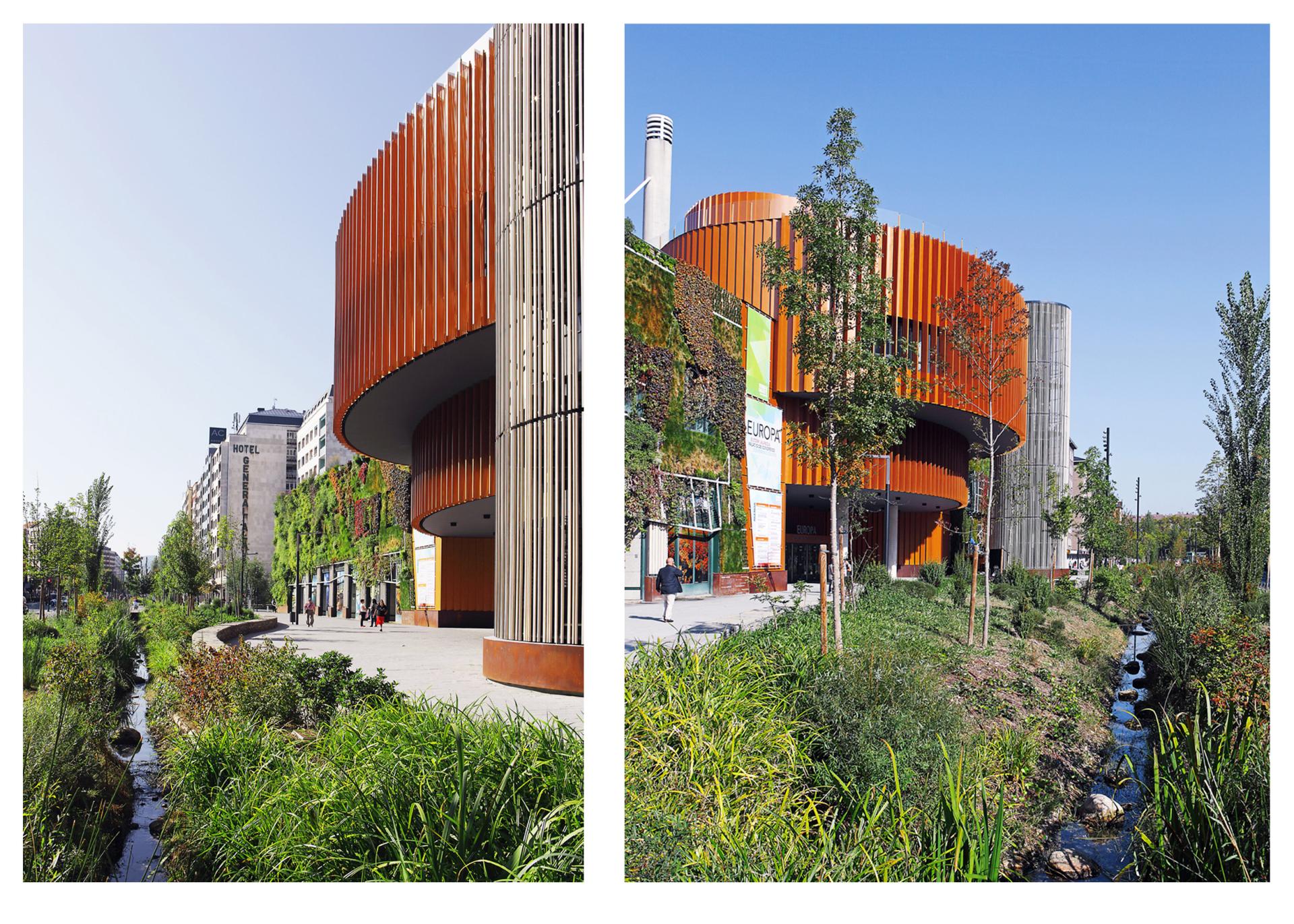 The project has had great significance, both locally and abroad. And although in its early stages it generated certain concerns, the passing of time has consolidated it as a valid reference and the resilience of nature continues to improve it day by day. It has turned out that the decision to rely on nature, both in the building work and in the urbanization, has shown to be suitable, contributing not only to the protection of nature but also to the generation of biodiversity. The incorporation of vegetation, in the three areas, roof, façade and public space, has managed to satisfy the required functionality in the building and its surroundings. • the green roof has “given back” to the citizenship and nature the space/land occupied by the building, through a green space for public use. • green façade: its insulation and thermal protection and regulation is variable in the different seasons depending on the plant cycles. 80% of the irrigation needed is achieved by storing rainwater from the roofs. • the public space previously occupied by the private vehicle, has been returned to and occupied by pedestrians. Also an old existing river has been regenerated and its riverbank completely revegetated