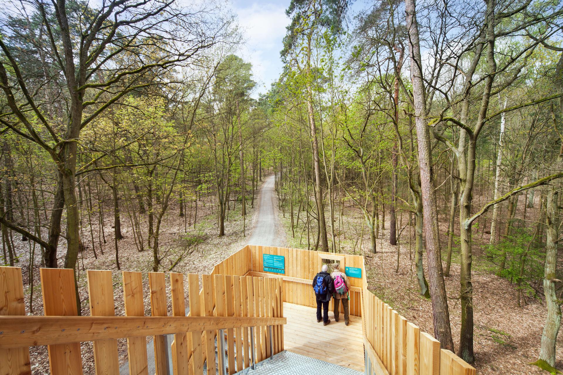 The paths and platforms are wheelchair-accessible as much as the terrain allows without impacting the forest ground. The entrance area to the path is positioned in the vicinity of a bus stop to allow access by public transport.
