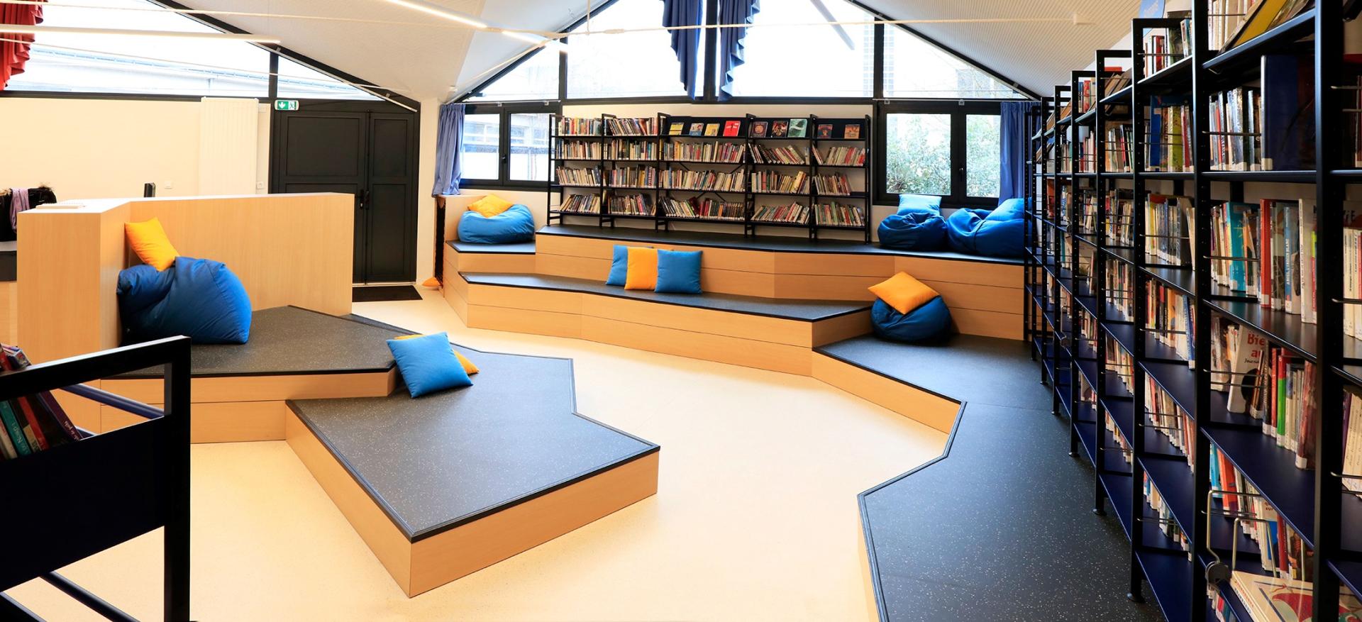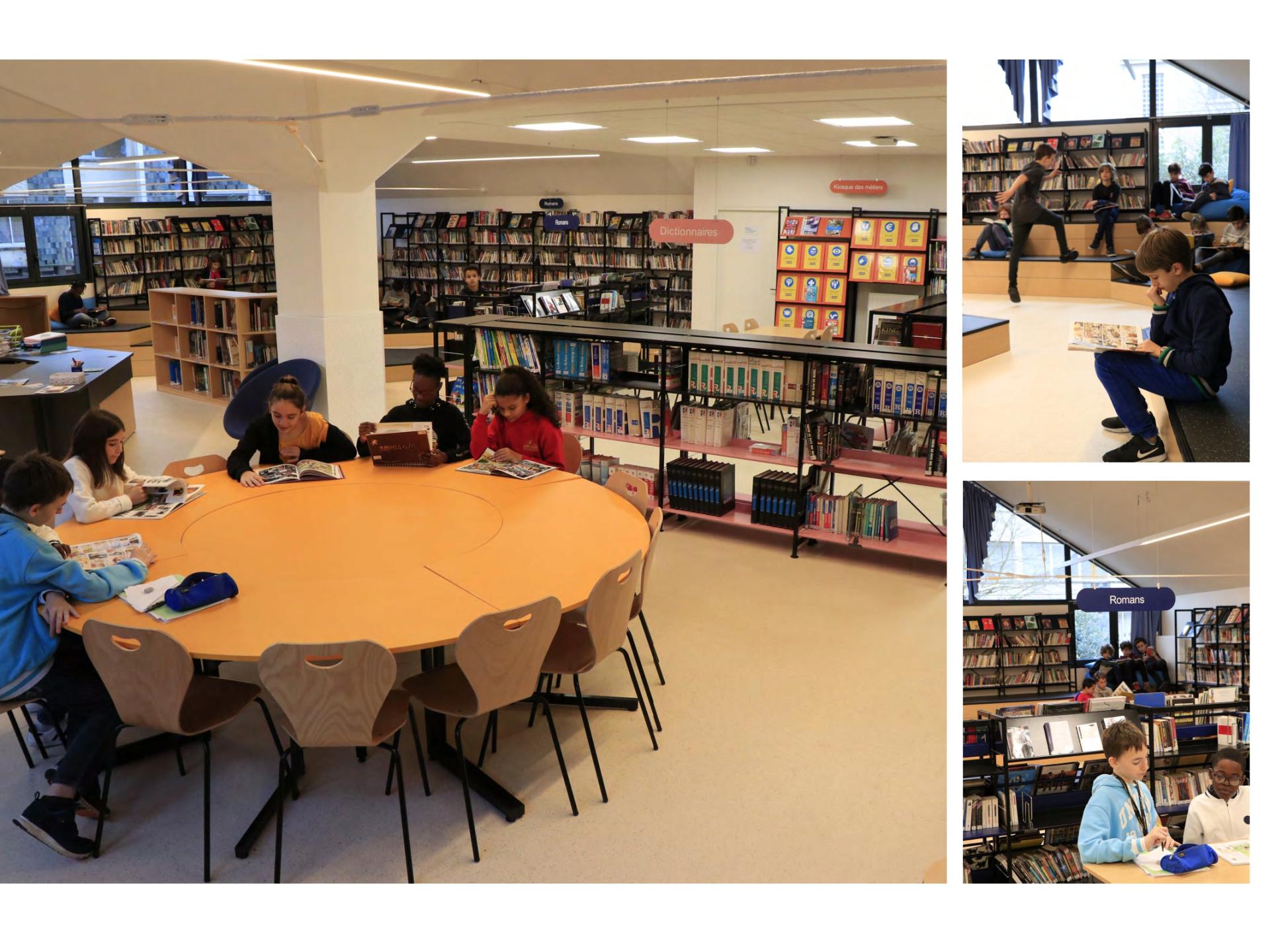The switch of a classroom which was located on the ground floor and the CDI (Centre of documentation and Information) has enabled the latter to open onto the playground and has therefore quadrupled the number of visits it receives. Access to books has been facilitated, reading for pleasure highlighted through the choice of publications but also through the situations offered to kids, which are more relaxed, more in line with their teenage tastes.