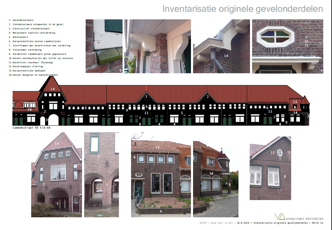 - The architectural details of the buildings are rich and typical for architect Jesse, despite the fact the estate was built as social housing. It was crucial that these elements be repaired or restoredto the original design (see picture).