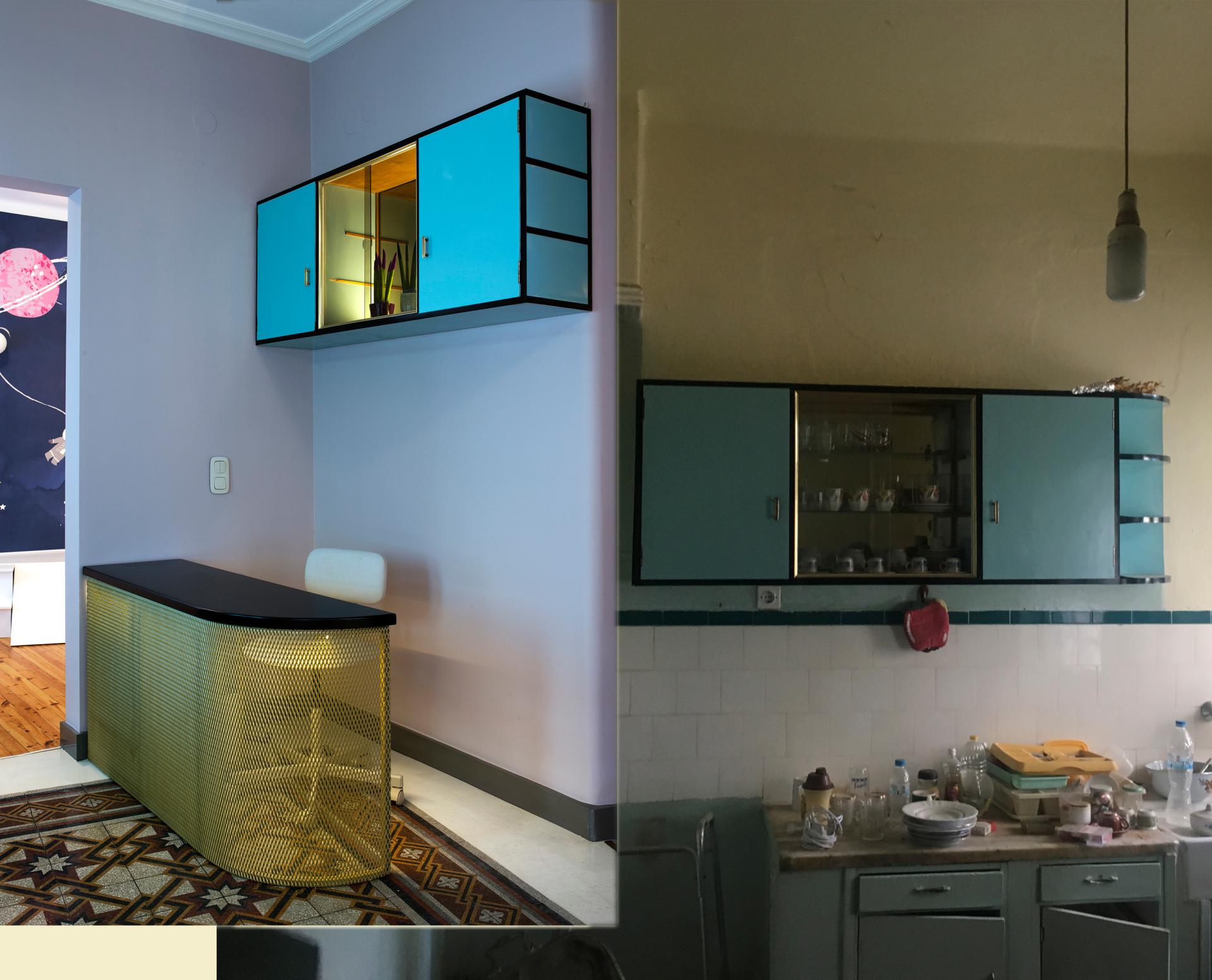 The pediatric clinic was not thought and designed at once from the studio rather followed the procedure of demolitions and estimation of building’s condition. The design procedure was many times ad hoc and altered during the construction as malfunctions, repairings and changes were required for networks’ installation. At the same time many choices were driven by the building and the furnishings themselves as it was a priority to preserve pre-existing elements. For instance, the kitchen’s cupboards became part of the reception, a cloth closet turned into a cabinet with medical equipment and appliances, whereas the inner of a cupboard onto which a telephone directory of the previous owner was handwritten was preserved and highlighted. The new elements (such as the metal wall behind the doctor’s office) were thought as parts of great contrast. The initial idea was that the opposition materials and design qualities between the old part and the new additions would create an interesting dialectical symbiosis of dipole that would strengthen both the parts.