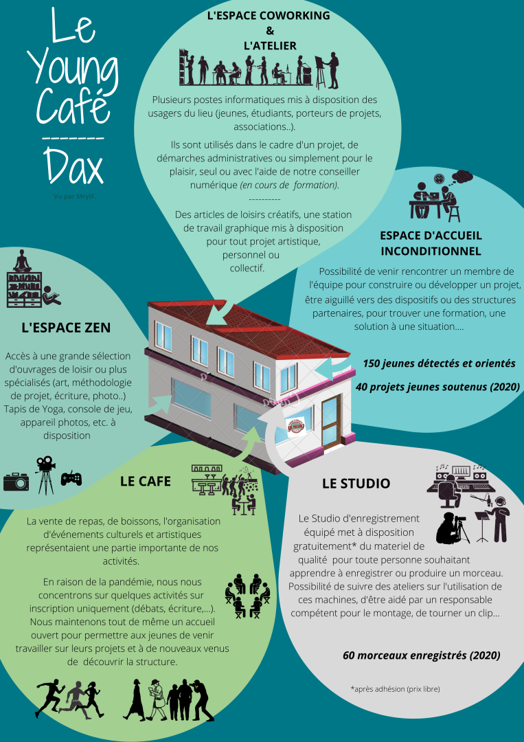 This is how several supported projects can be set up in the place, have an office or that accompanied young people can join the team in internship, in civic service "Project", or as a volunteer for example. Particular attention is paid to the "1 young person - 1 solution" program” to guide young people towards learning paths, training qualifications or diplomas lacking in the territory.