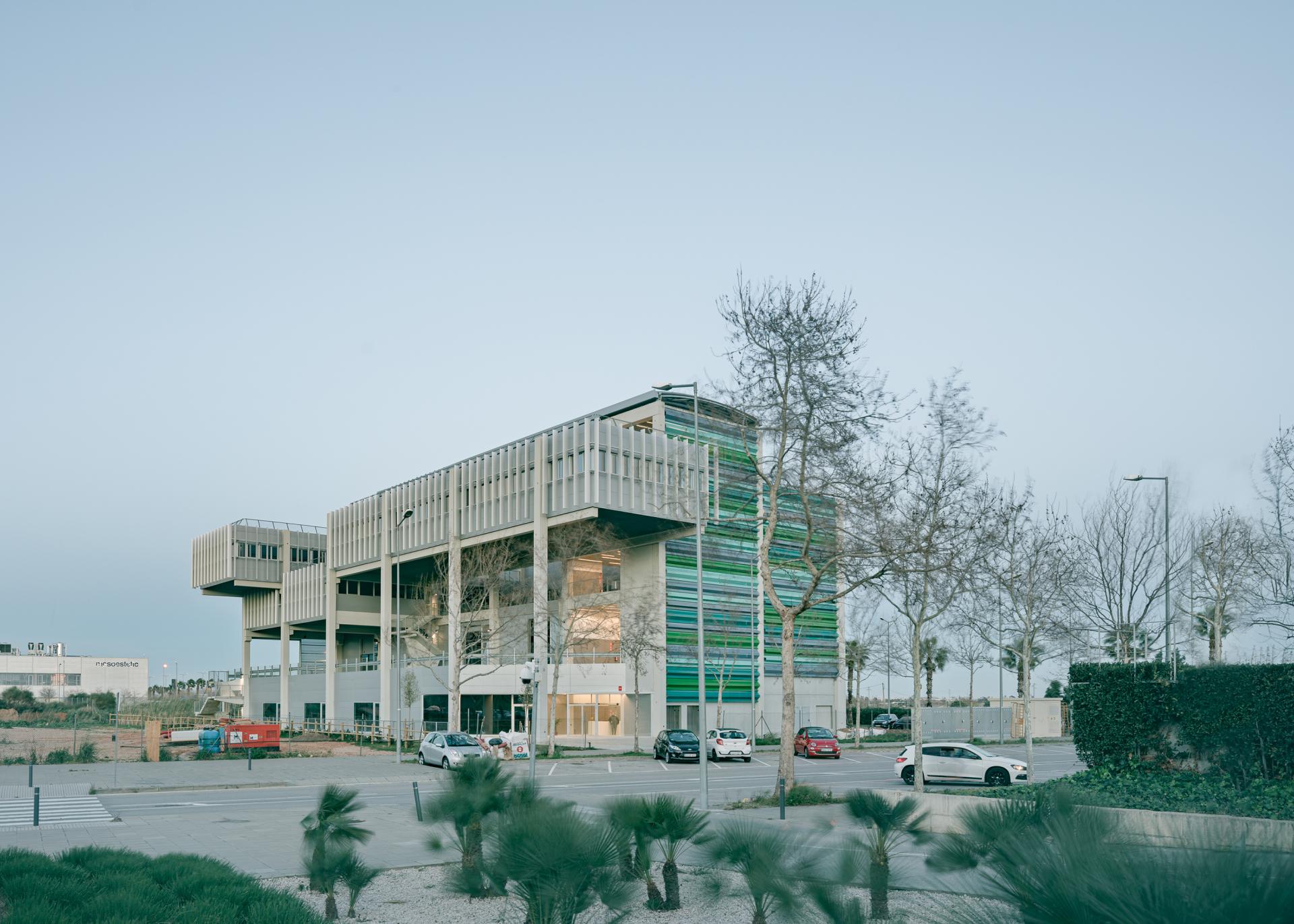 The building is located in a growing area of the city of Viladecans, where the city council is promoting a new business centre. In the past, the main economic activity of the city was agri-food. The building is located between the highway, bordering the Agrarian Park, and the new economic centre. Its formal response reflects this dialogue.