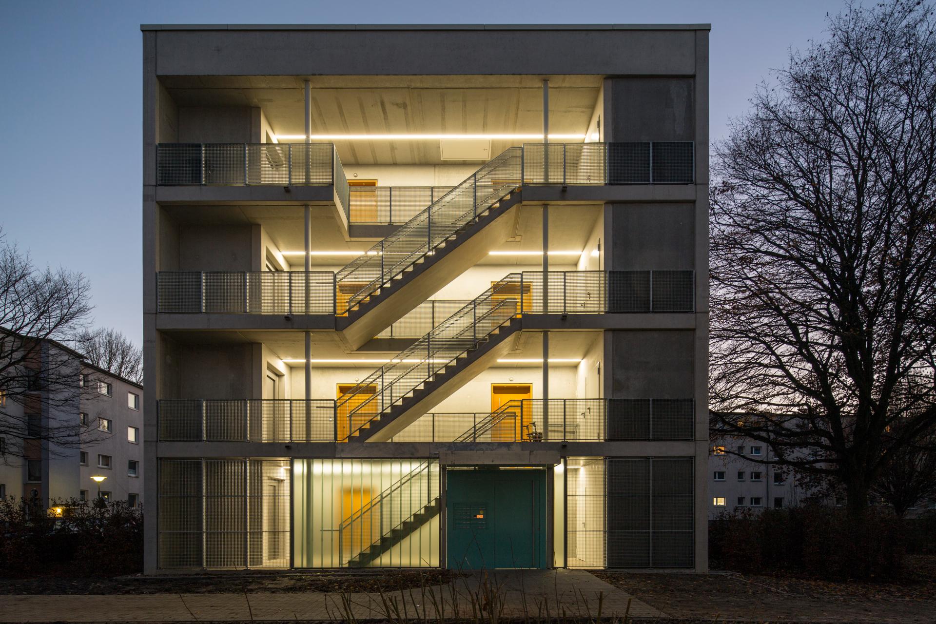 The “ungewöhnlich wohnen” (unusual living) competition originally envisaged a new construction site which was already agreed with everyone involved in the process, e.g. city planning, Chamber of Architects, and local politicians. One goal of the competition was the ability to apply the solutions to comparable urban situations. As plans for the competition result became more specific, it was possible to swiftly develop a second, neighbouring and identical site by informing the residents at an early stage so as to prevent any controversial site discussions.