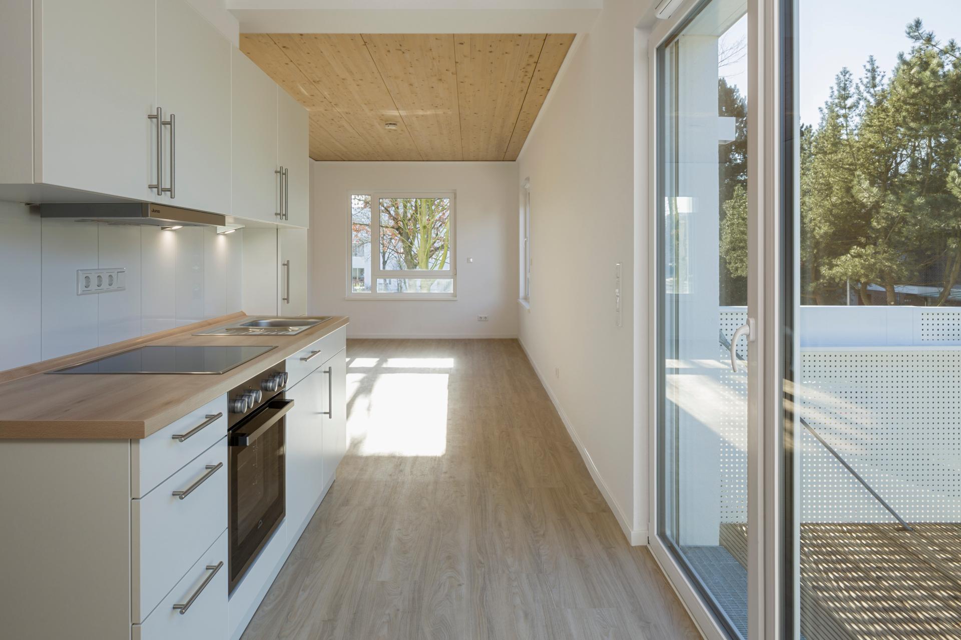 The timber hybrid design permits the greatest innovative potential displayed by the Bremen Cube: apartments to be selected by the future residents of the Bremen Cubes offered for communal living forms. This unique selling point means that the Bremen Cube enables communal living projects in subsidised accommodation even for people with low incomes and in a rental model.