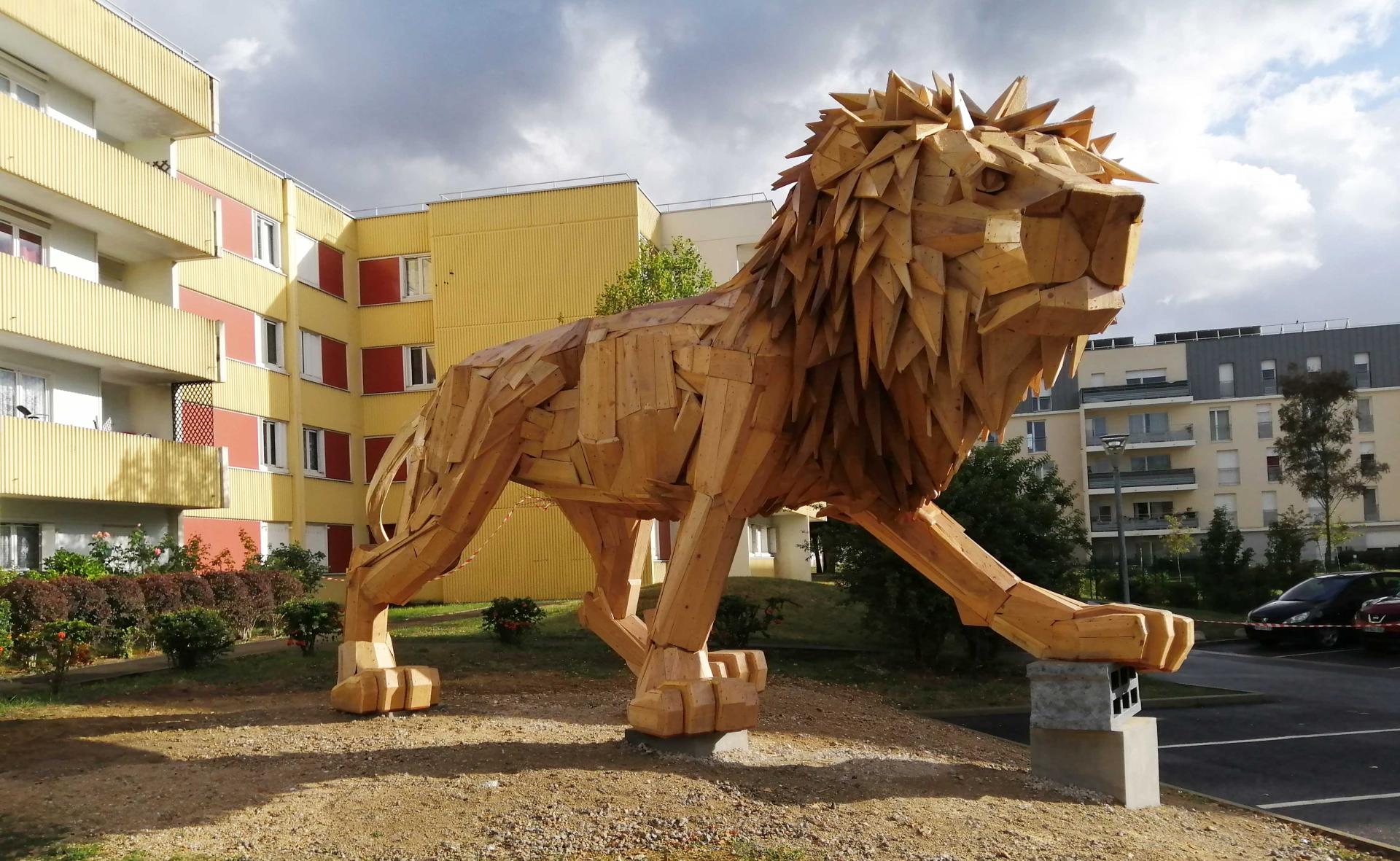 The final work, which is majestic and imposing, was inaugurated in late September 2020 and the lion is now installed in the very heart of the housing estate and the Les Genêts neighbourhood. The inhabitants of the building are very proud of it. It draws many visitors from outside, contributing towards opening up the neighbourhood to the outside world.