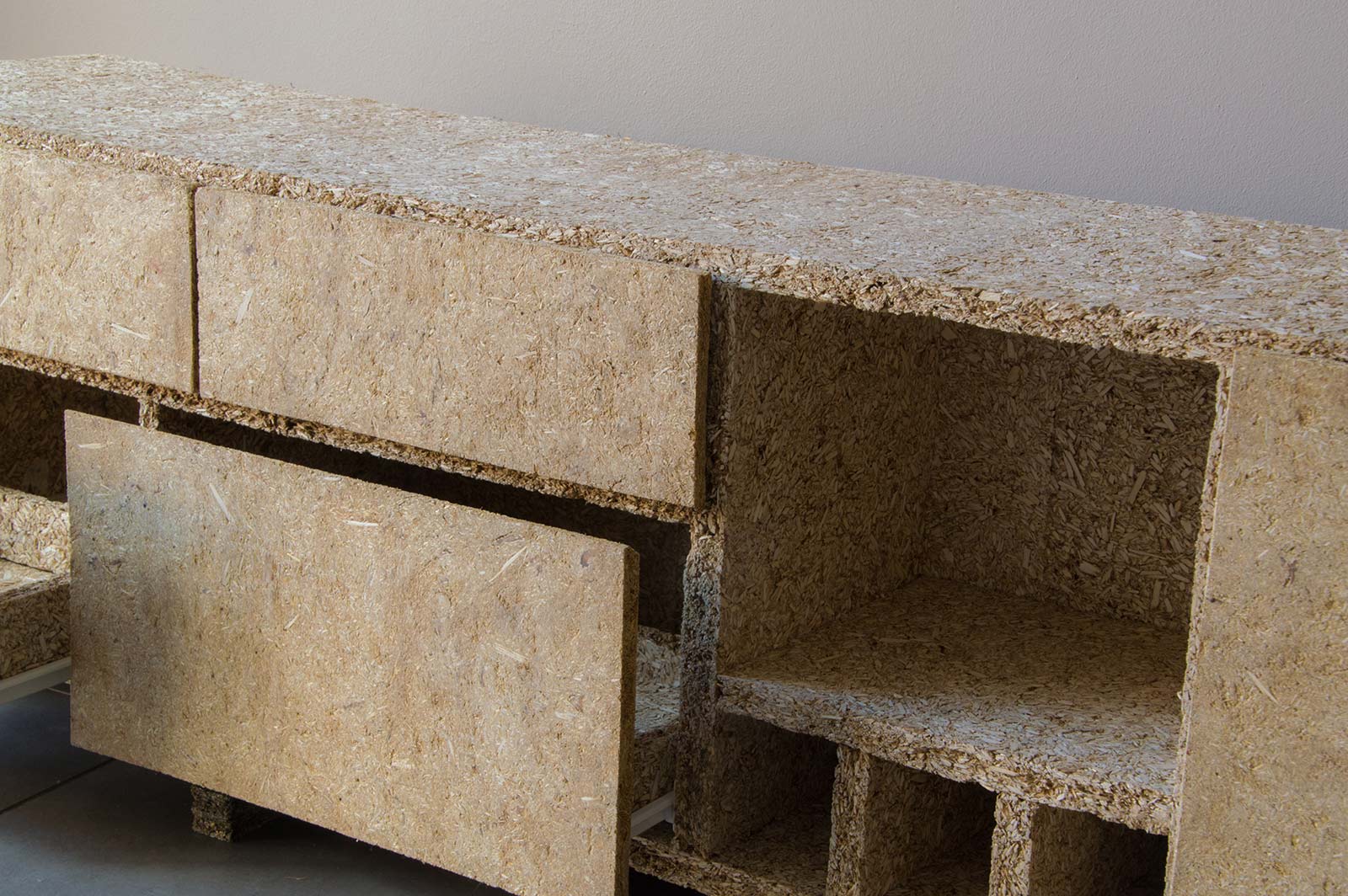 When it comes to consumers we first of all noticed the bulk amounts of agricultural waste. That can be transformed to chips, as described before. Because of such bulk amounts the potential is there to build a big production line, that can produce material for affordable pricing for many people in society, think about interior products, cabinets and floors.
