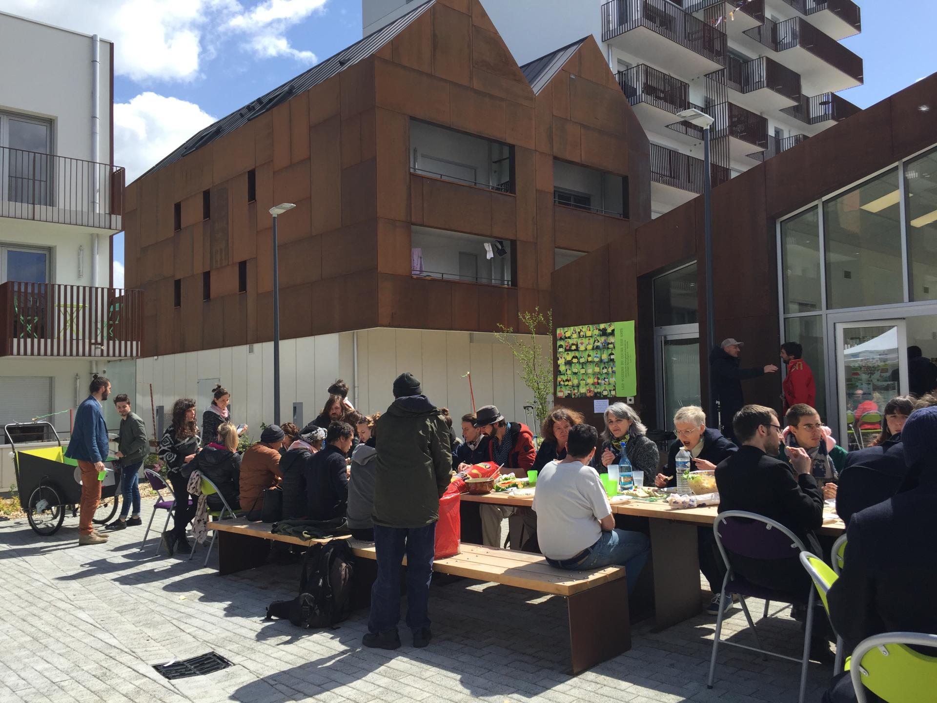 At the Cours des Arts, the challenge was, and still is, to bring 119 housing of different background to live together. In order to manage and animate the shared areas, it was necessary to choose a mean and an entity : self-management, co-ownership, association... with whom? why? After several workshops, the choice was made to create an association dedicated to the animation and management of the community room. Therefore no distinctions between the tenants and owners is made. Its main purpose is to run and manage the social room, and by extension the garden. The members are divided into four groups :