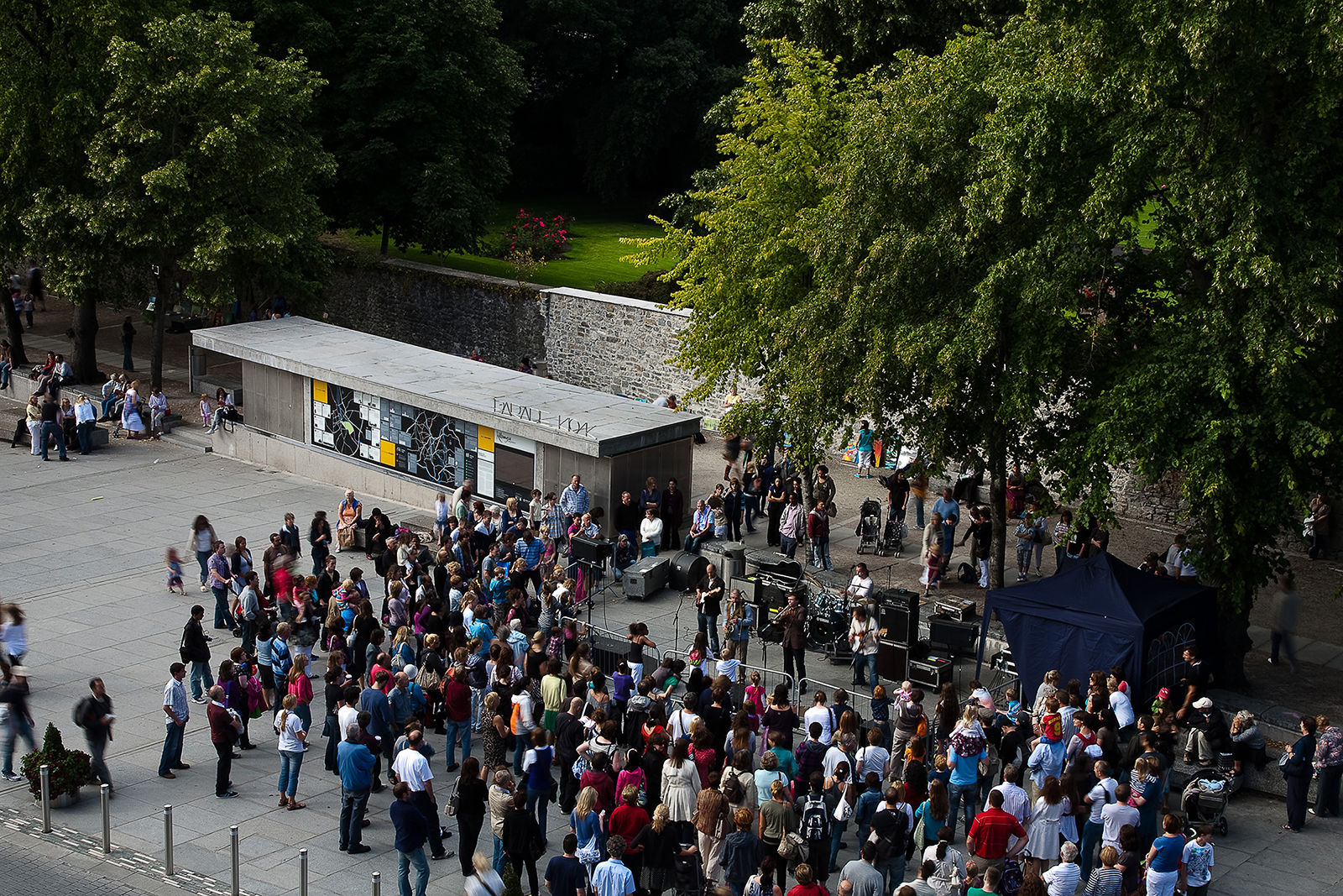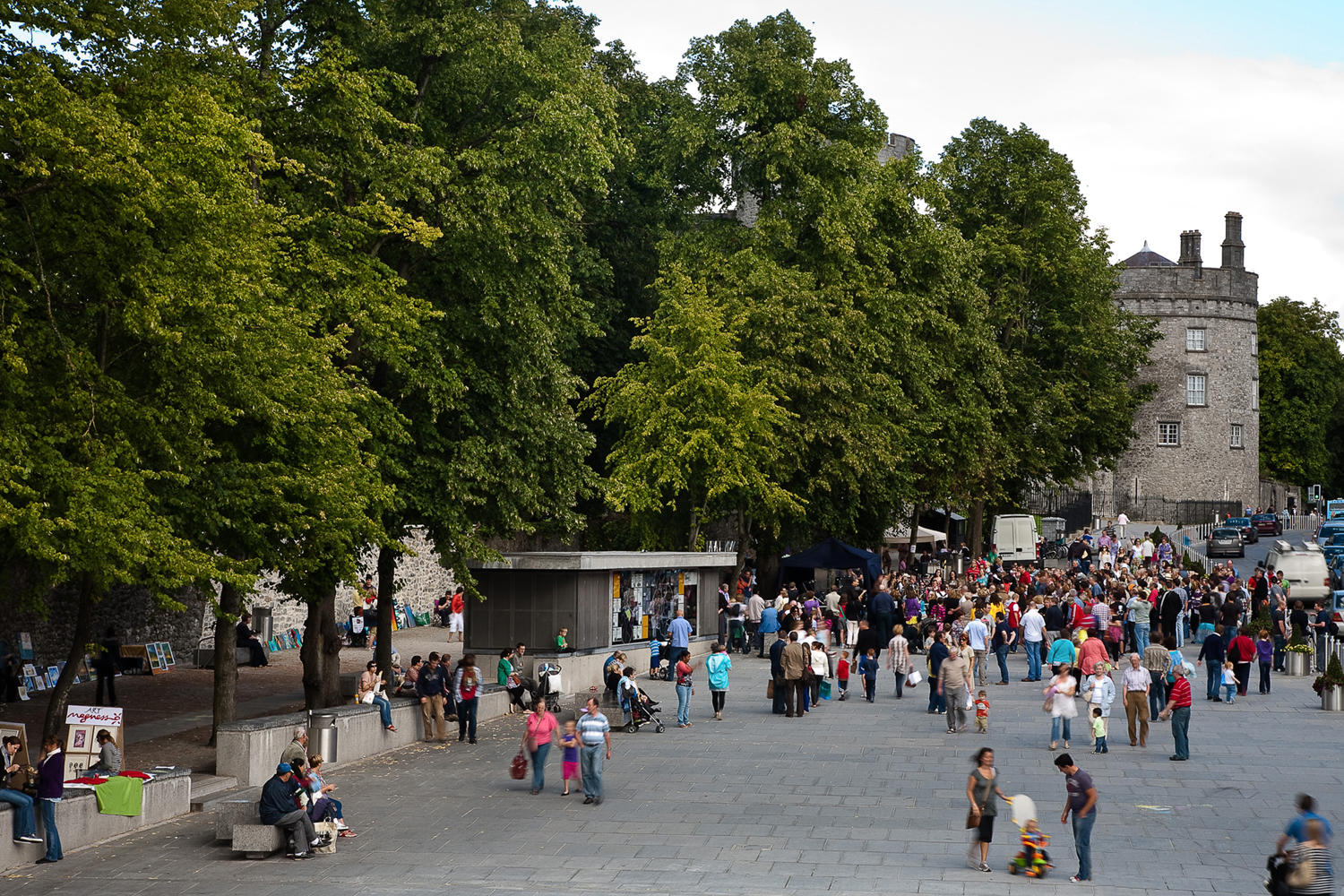 The project involves the reconfiguration of the urban spaces on either side of the 13th century Kilkenny Castle. The Parade, which rises and tapers towards the entrance to the Castle and opens out to High Street, is cleared of car parking and unified by a continuous stone floor. The project seeks to understand these underused public spaces, unify them and restore their latent potential to be the civic meeting places for the city. It makes urban spaces into public places.