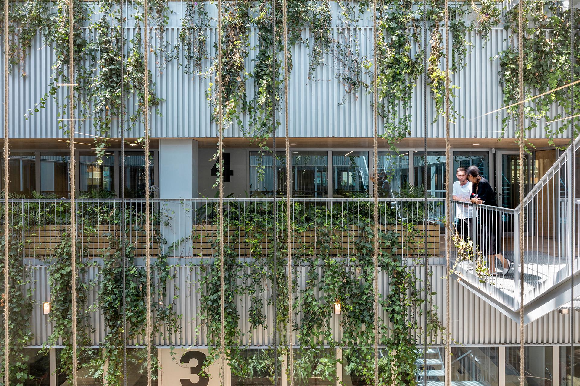 - Fostering biodiversity designing a biophyllic building where vegetation prevails on elevations, roof, patio, and interiors. Improving people's health, air quality and biodiversity of our cities.