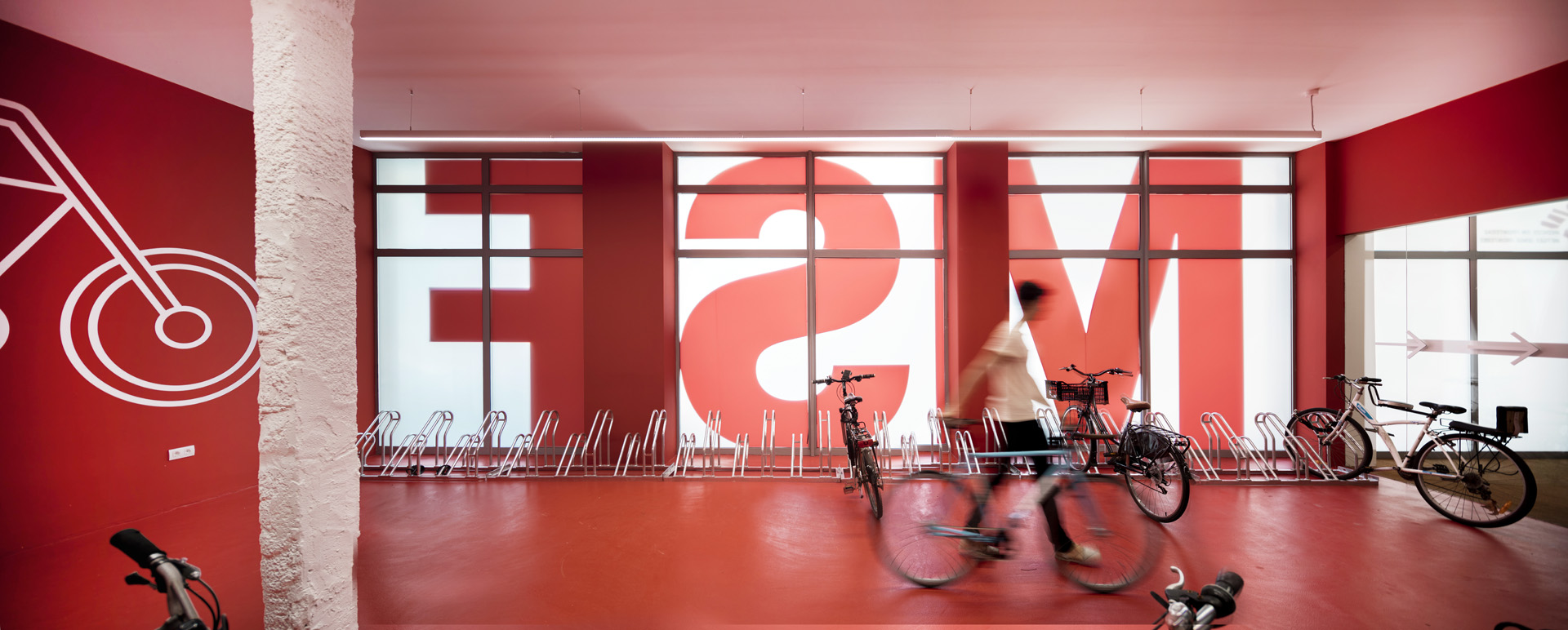 - Sustainable Mobility is encouraged by placing the bicycle parking on the main entrance. The building adds to the city's new sustainable mobility network. Healthy interior routes are also encouraged adding a new staircase into the central patio.
