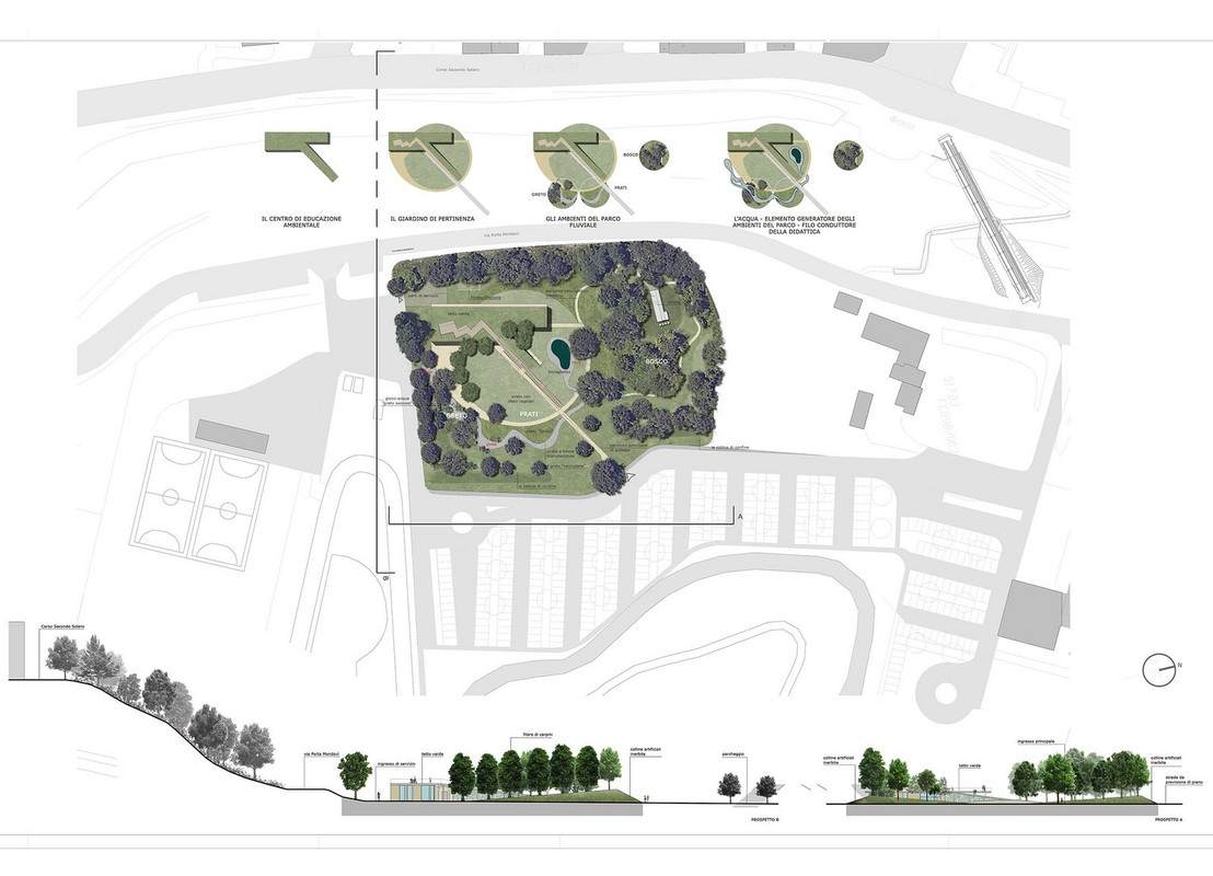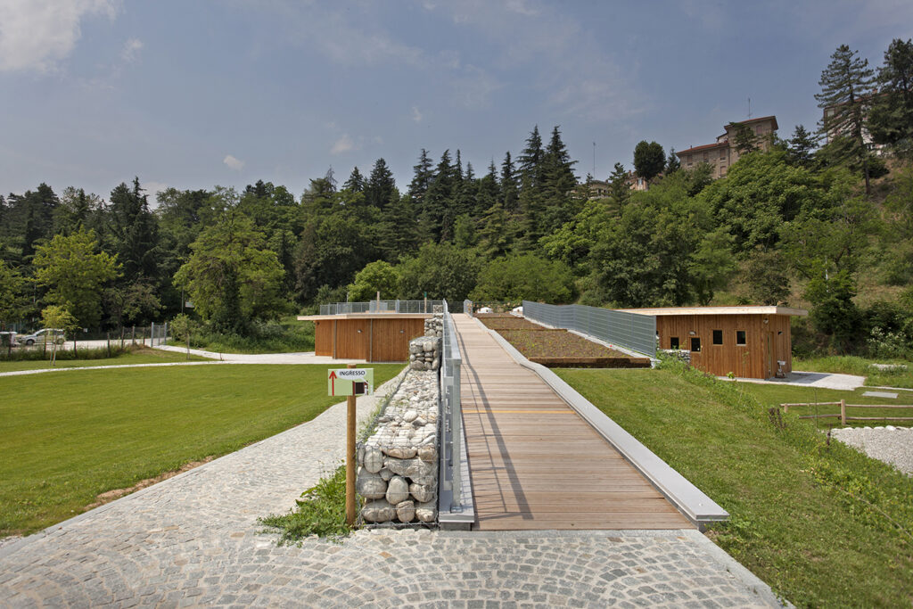 Another input that the project has pursued is to create a recognizable intervention that expresses the philosophy of the park and is capable of representing it in the collective imagination. The green roof that characterizes the project with its view of the city from above is an answer to this need. From below its simple and open shape on the landscape with the ramp inviting the climb to the garden roof will also be a reason for characterization and recognition.