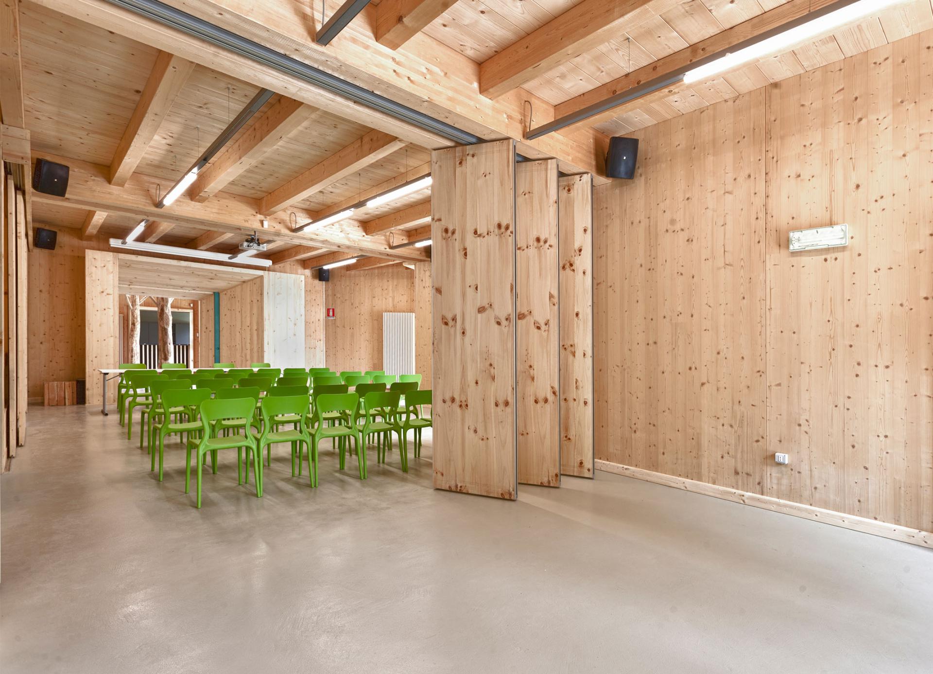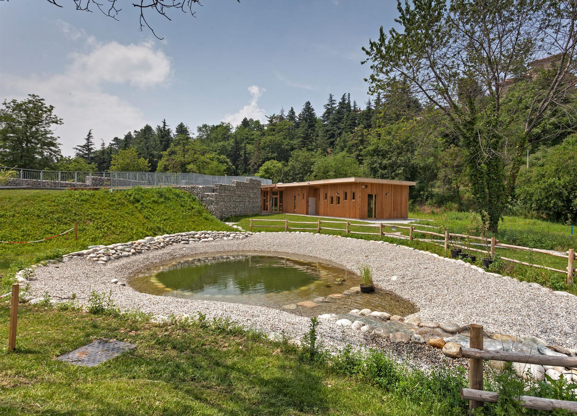 The building includes a sample of materials to be observed through the didactic windows that show the composition of the masonry package, the stratigraphy of the roof and the attic: the building constantly reveals its substance to the visitor. matter, the energy path of the environmental education centre includes meters for measuring energy production and constant monitoring of consumption. An educational switchboard will have the role of a true energy observatory capable of evaluating the energy balance of the building at any time. Outside the building, you can follow the water path set on the cyclical use of water resources by observing the various phases of transformation: from drinking water, grey and black water to Phyto-purified water, passing through rainwater.