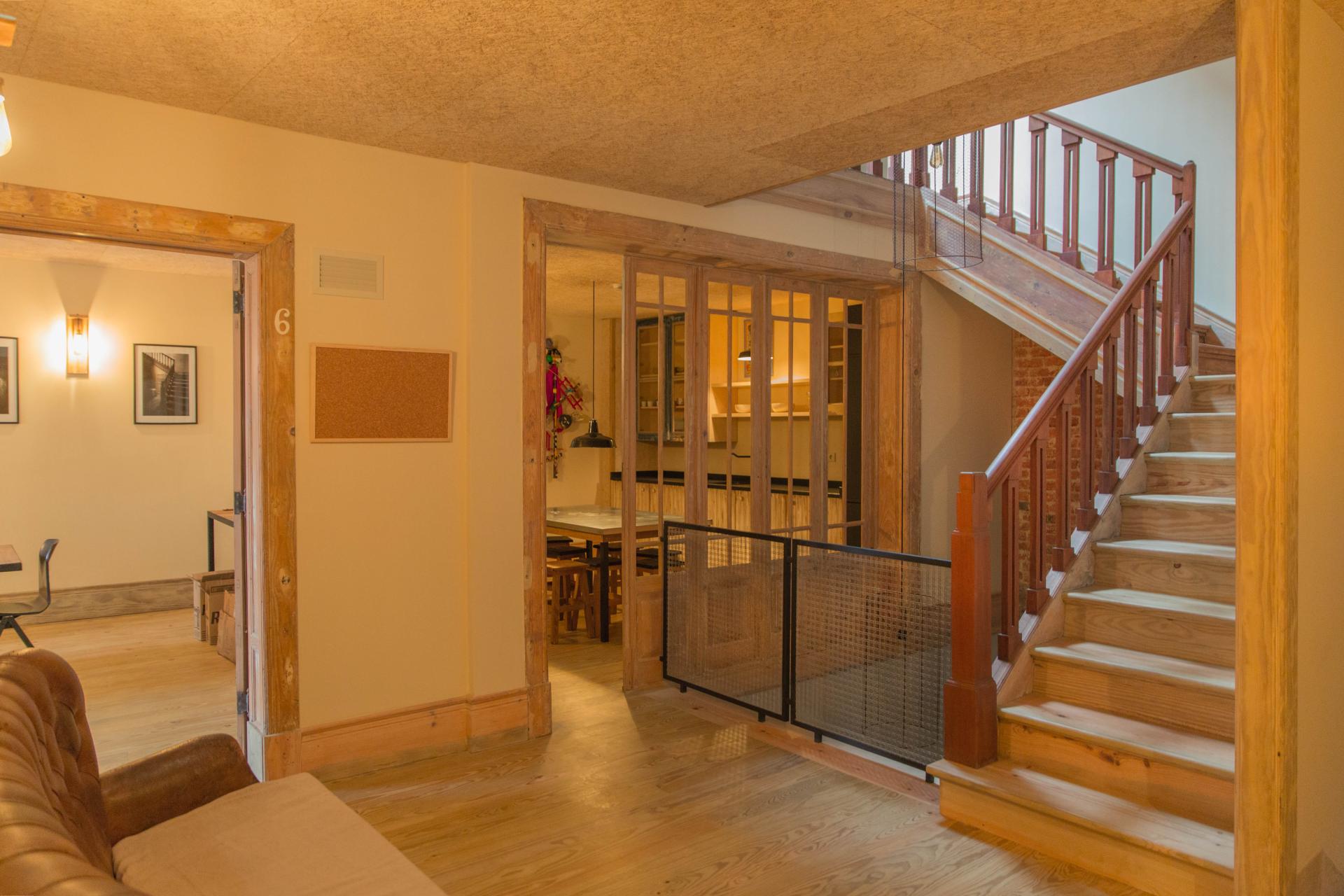 When using lime-based mortars on the walls and on the ground floors, the very touch on the walls is warm. We gave privilege to the use of the wood that we removed from the interior of some existing walls, to serve as an apparent covering for new walls or baseboards.