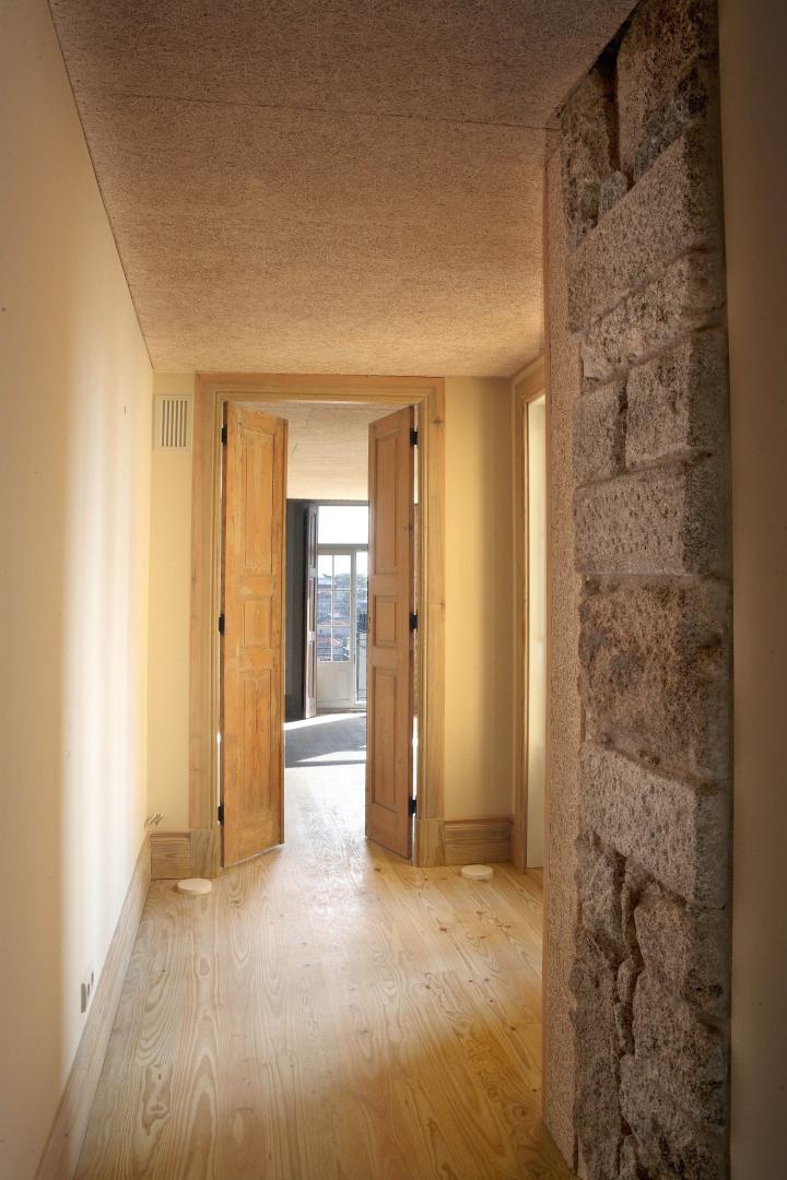 The project preserved the number of floors and the shape of the roof of the existing building, with a slight interior reorganization, in order to maintain the structural system of the floors and roof, as well as the existing stairwell. Regarding the exterior finishes, the characteristics of the original construction were recovered, through the use of traditional materials, with only the inclusion of natural materials in specific cases in order to obtain better results at thermal or acoustic levels. The project was developed with the focus on preserving the building's identity, and for that purpose, all existing aluminum frames that were inconsistent with the image of the building as a whole were suppressed and were replaced by wooden frames. We wanted to create calm environments and that the raw material for the coatings would be apparent, where the neutral and warm tones would transmit heat to us.