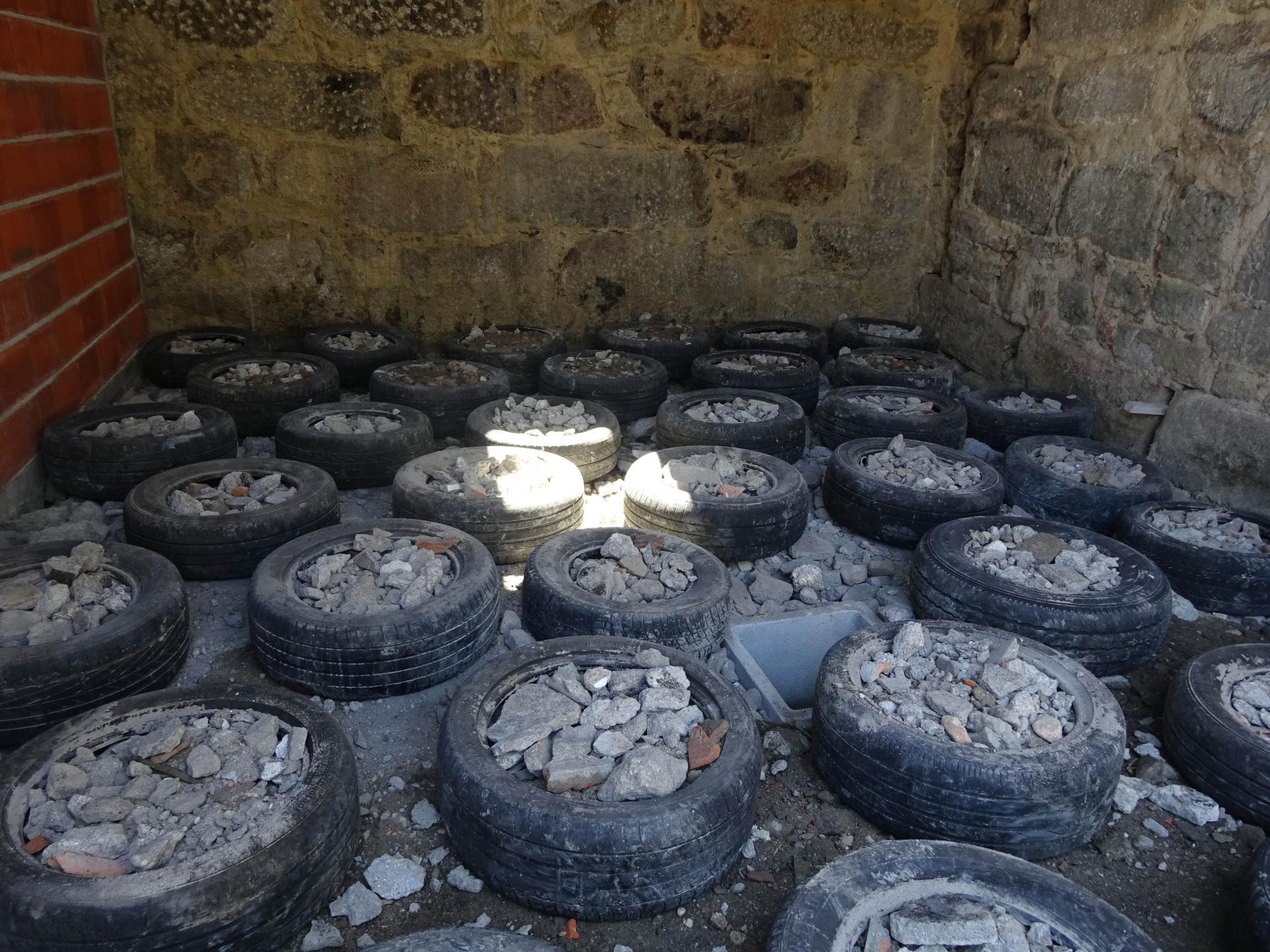 Bearing in mind that the project was based on the reuse of materials, such as tires, or the use of virgin cork that comes directly from the tree to the work without processing, in the construction phase, we were able to work directly with small suppliers instead of large companies . The local community was involved in this process. As we were able to recover traditional construction techniques, which unfortunately were being forgotten, we had contacts with artisans who taught us their technical and empirical knowledge, so we were able to store knowledge for future works and share it with other interested parties. The debris, such as tiles or floorboards, were brought in from other nearby works in progress, to be reused, involving other construction companies in this process.