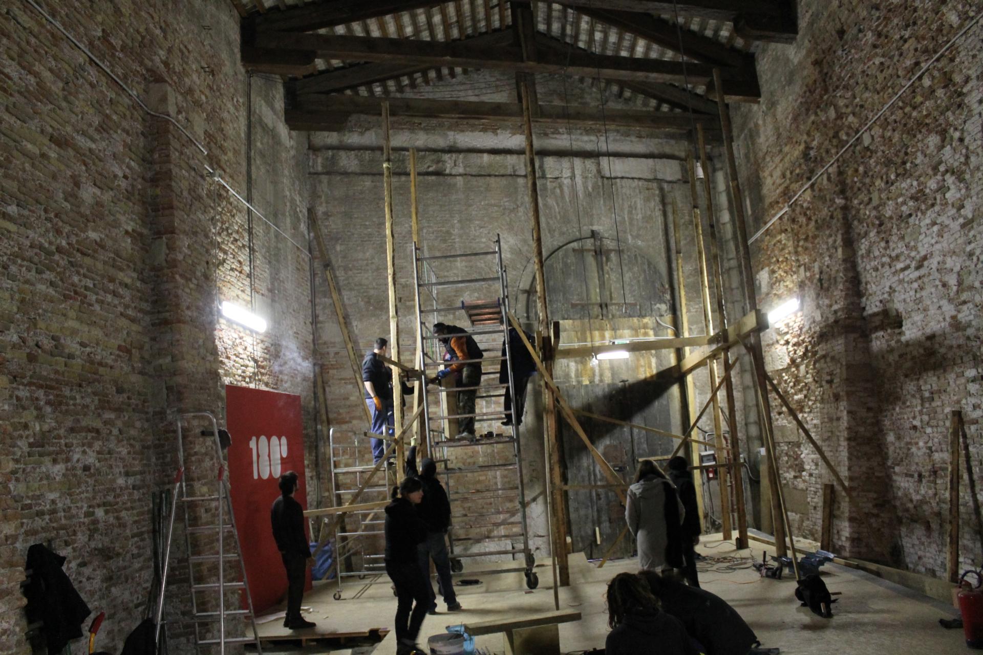S.a.L.E. Docks is in network with local and international organizations and groups active in the fields of art workers’ rights, environmental issues, gender equality and inclusion, claiming social and public space as a common resource. On a local scale, we host the assemblies of activist feminist groups and the Committee Against Cruise Ships as well as the rehearsal of emerging theatre companies. At the same time, we collaborate with well-known international art collectives (Gulf Labour, Macao, Chto Delat) and formal institutions (Architecture University of Venice, Workspace Brussels, Goethe Institute, Reina Sofia). Inhabiting a peculiar city and fragile lagoon ecosystem, we firmly believe that no cultural production is possible without environmental sustainability. To this end we developed a local network of collectives who co-own and share most of the materials and tools (A/V system, beamers, screens, construction tools...). Since 2008 we work together with Rebiennale, a local association that recovers dismantled exhibition materials from the Biennale and turns them into new exhibition displays and social housing projects.