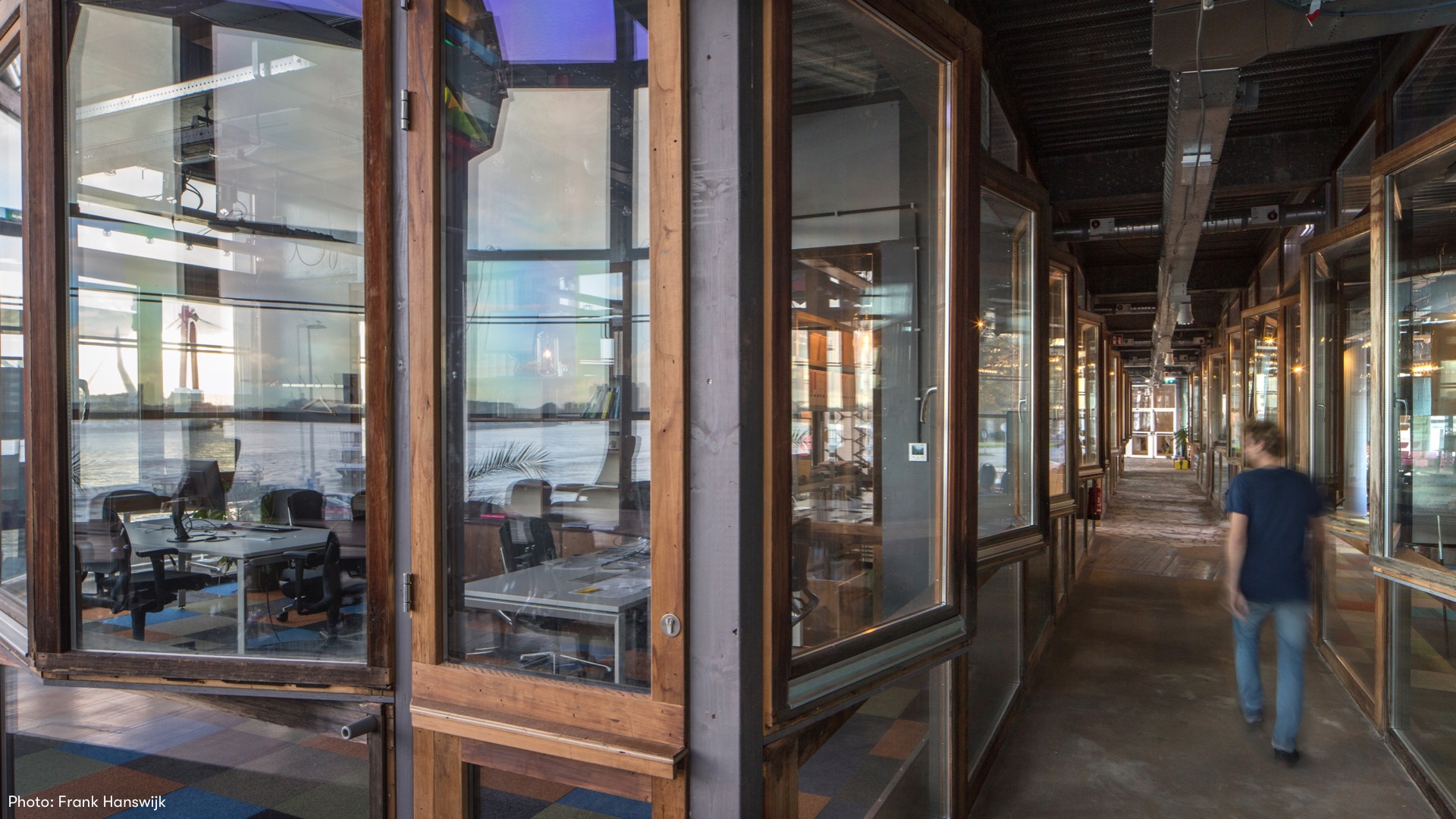 The first completed part – the office wing in the former disco – proves that this not only provides an inspiring working environment, but also considerable environmental benefits. The City of Rotterdam offers space to the dynamic development by working on the basis of a structure plan in which the final image and use is not recorded."