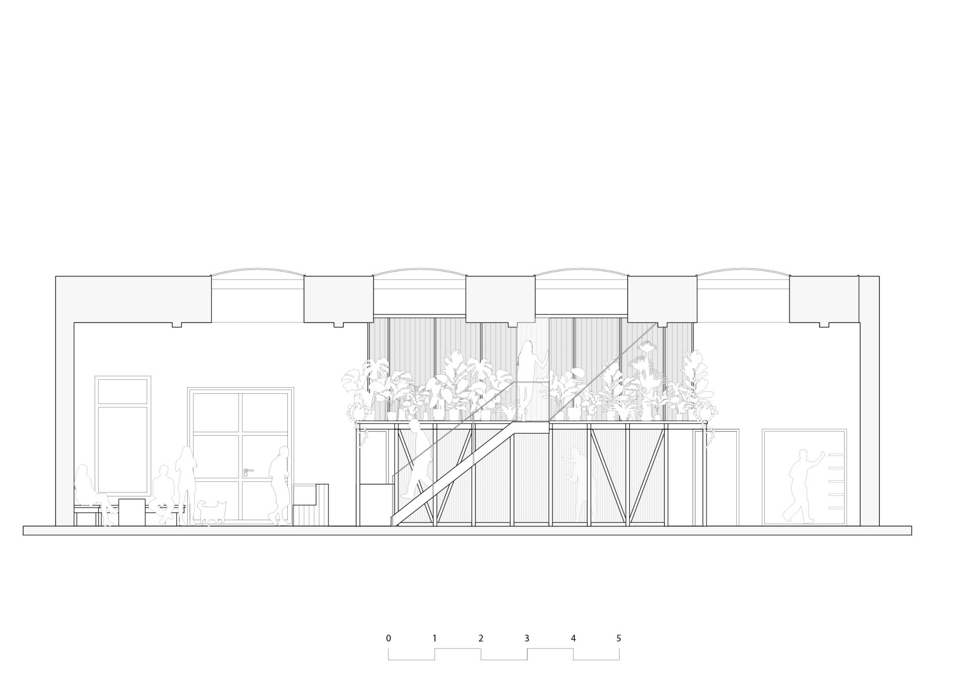Taking advantage of the overhead natural light, a translucent duplex object allows light through to the various functions of the hub, all integrated and connected within the unit.The further spaces from the entrance are dedicated to the in-house coffee production: from the storing of the raw beans to the roasting, cleaning, and packaging processes.